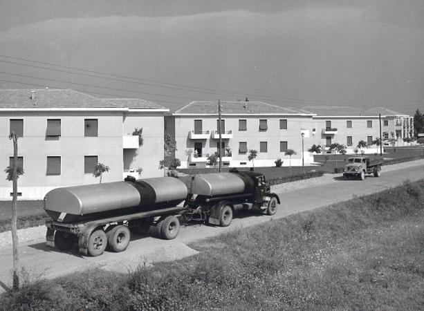 immagini su autobotti in ingresso e uscita, impianti, stazione di servizio (modello Mario Bacciocchi), edifici a schiera (probabili residenza dipendenti)