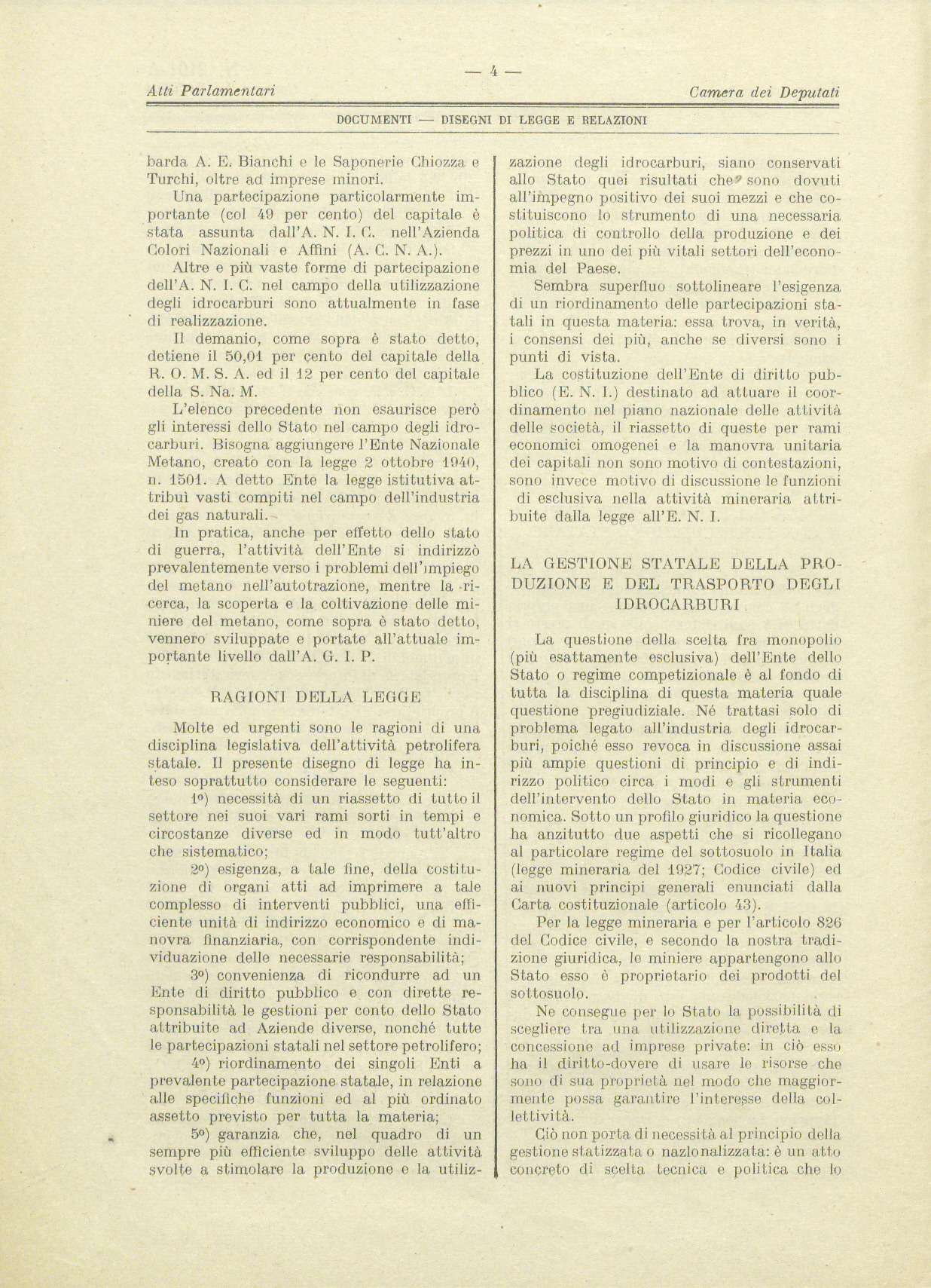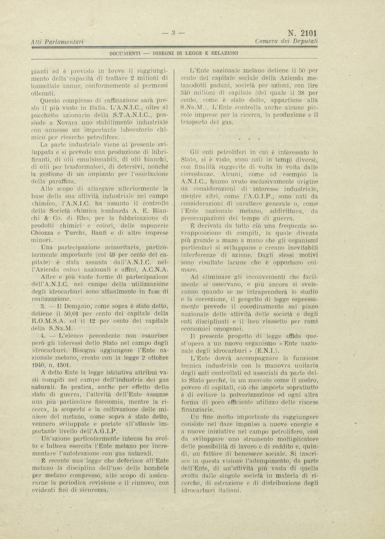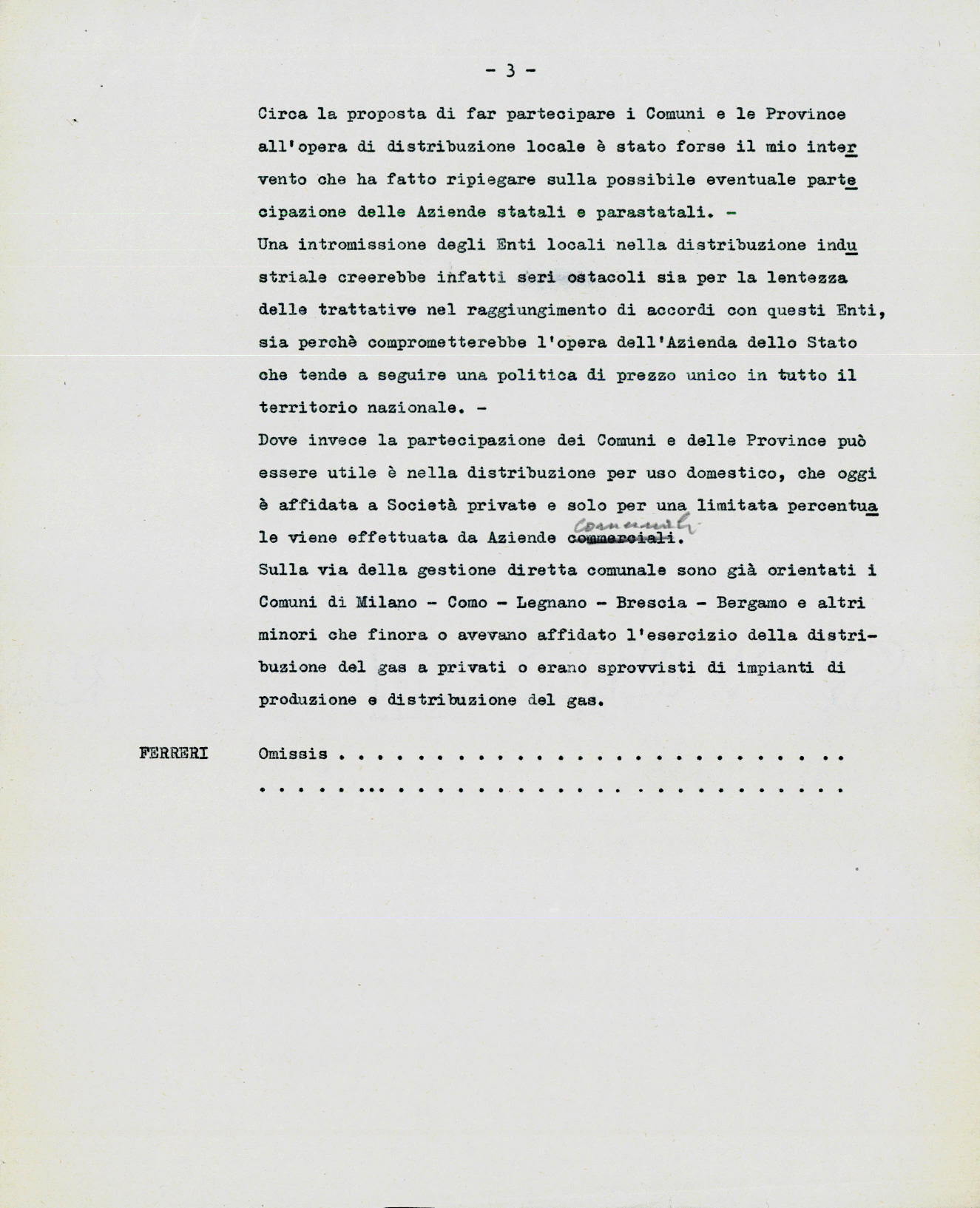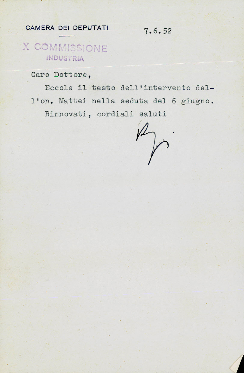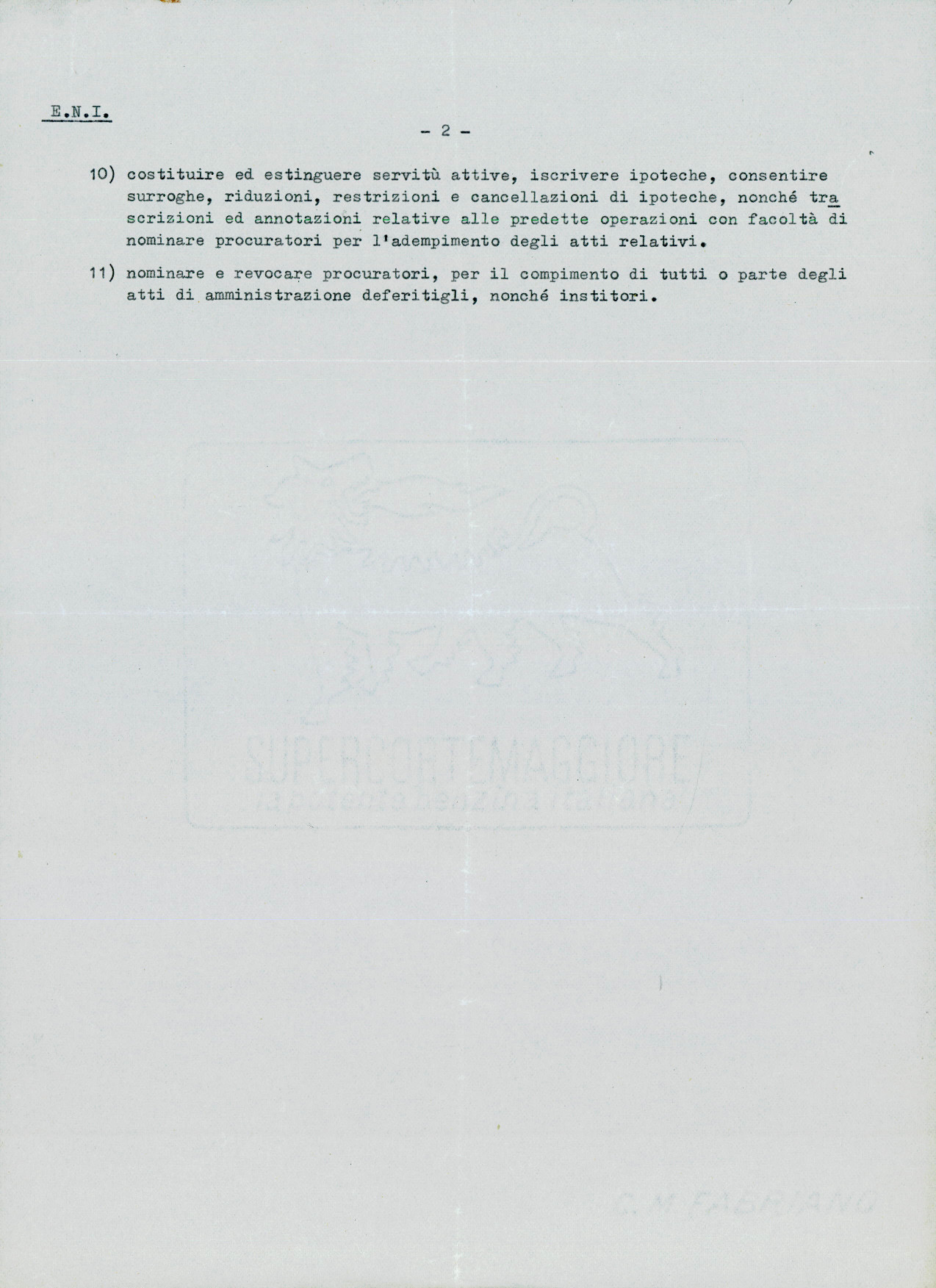 The original archive papers reproduced are taken from a file in the collection of President Enrico Mattei's Secretariat described in the inventory at the following link. It includes the original text of the bill for the establishment of Eni with its modifications and additions, various amendments, Mattei's handwritten notes and drafts of his speeches at the Chamber of Deputies. For the official documents of the legislative process, concerning the discussion and approval of the law, please refer to the historical website of the Chamber of Deputies and to the website of the Heritage of the Archive of the Senate of the Republic.