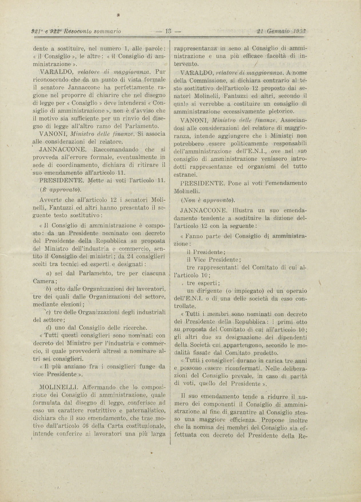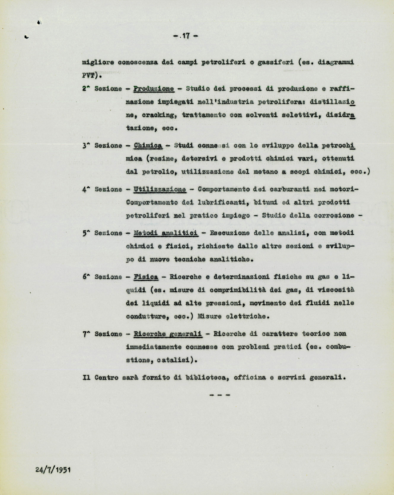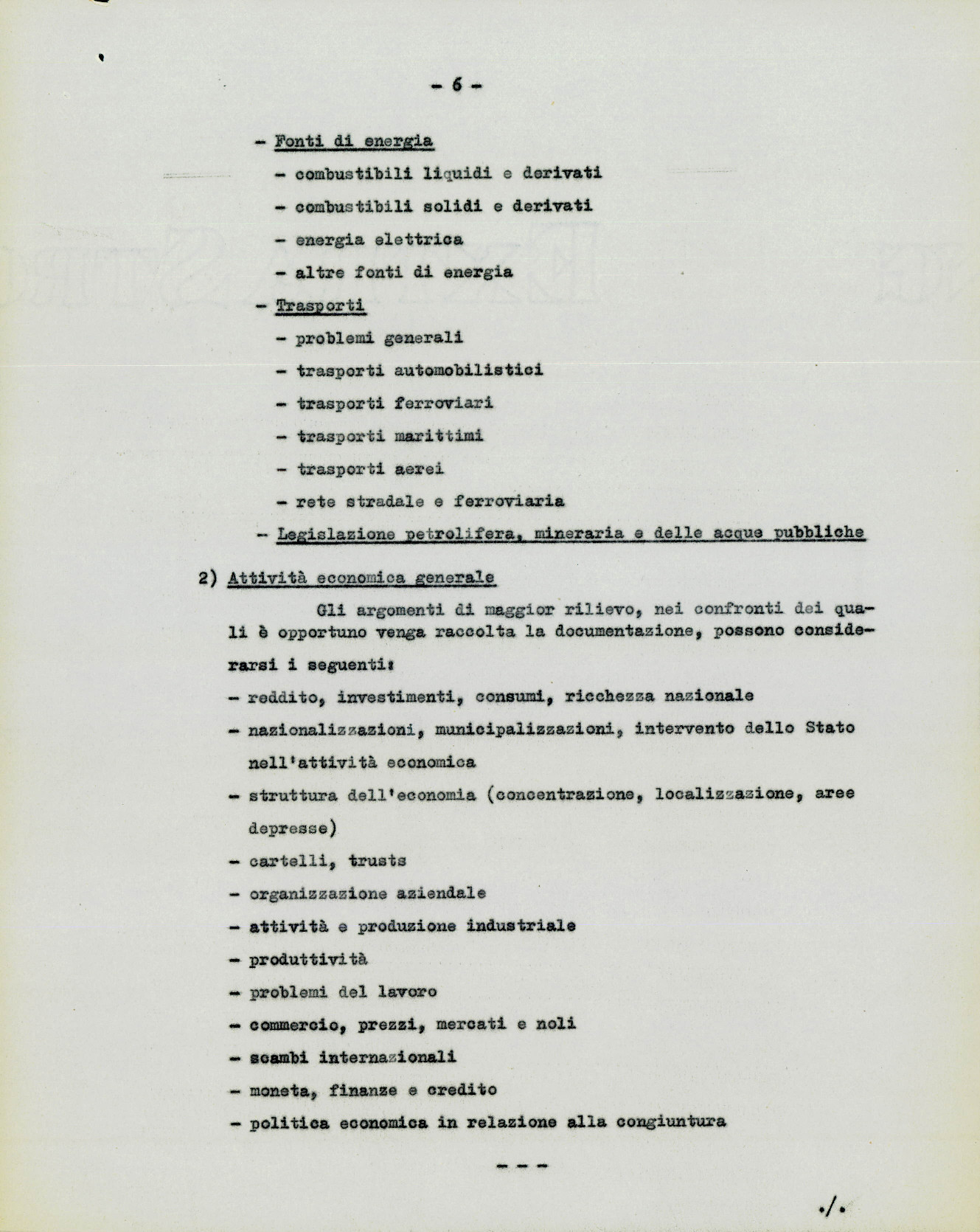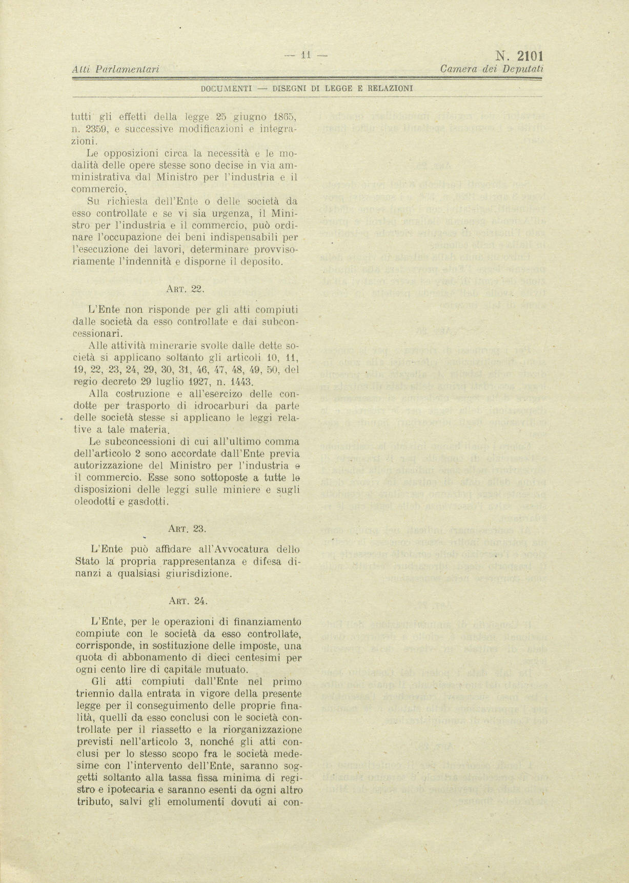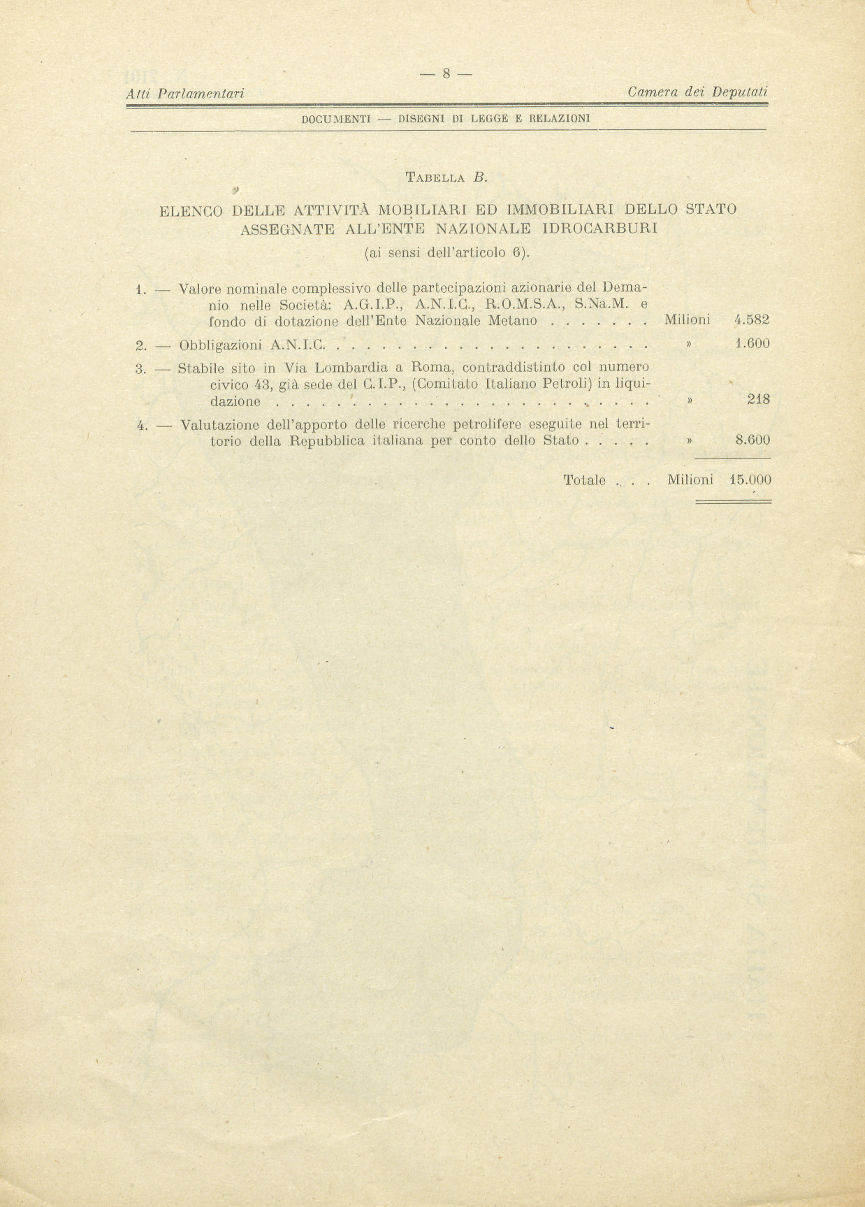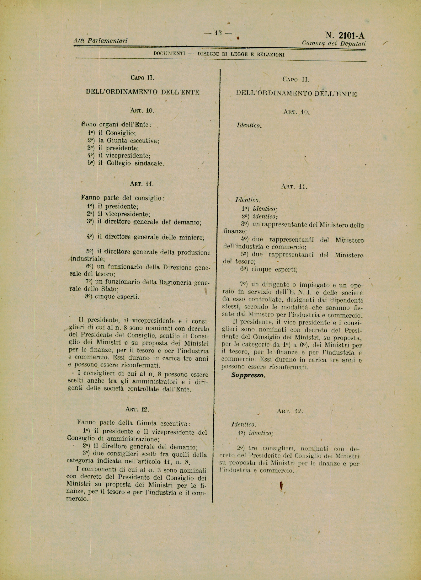 The original archive papers reproduced are taken from a file in the collection of President Enrico Mattei's Secretariat described in the inventory at the following link. It includes the original text of the bill for the establishment of Eni with its modifications and additions, various amendments, Mattei's handwritten notes and drafts of his speeches at the Chamber of Deputies. For the official documents of the legislative process, concerning the discussion and approval of the law, please refer to the historical website of the Chamber of Deputies and to the website of the Heritage of the Archive of the Senate of the Republic.