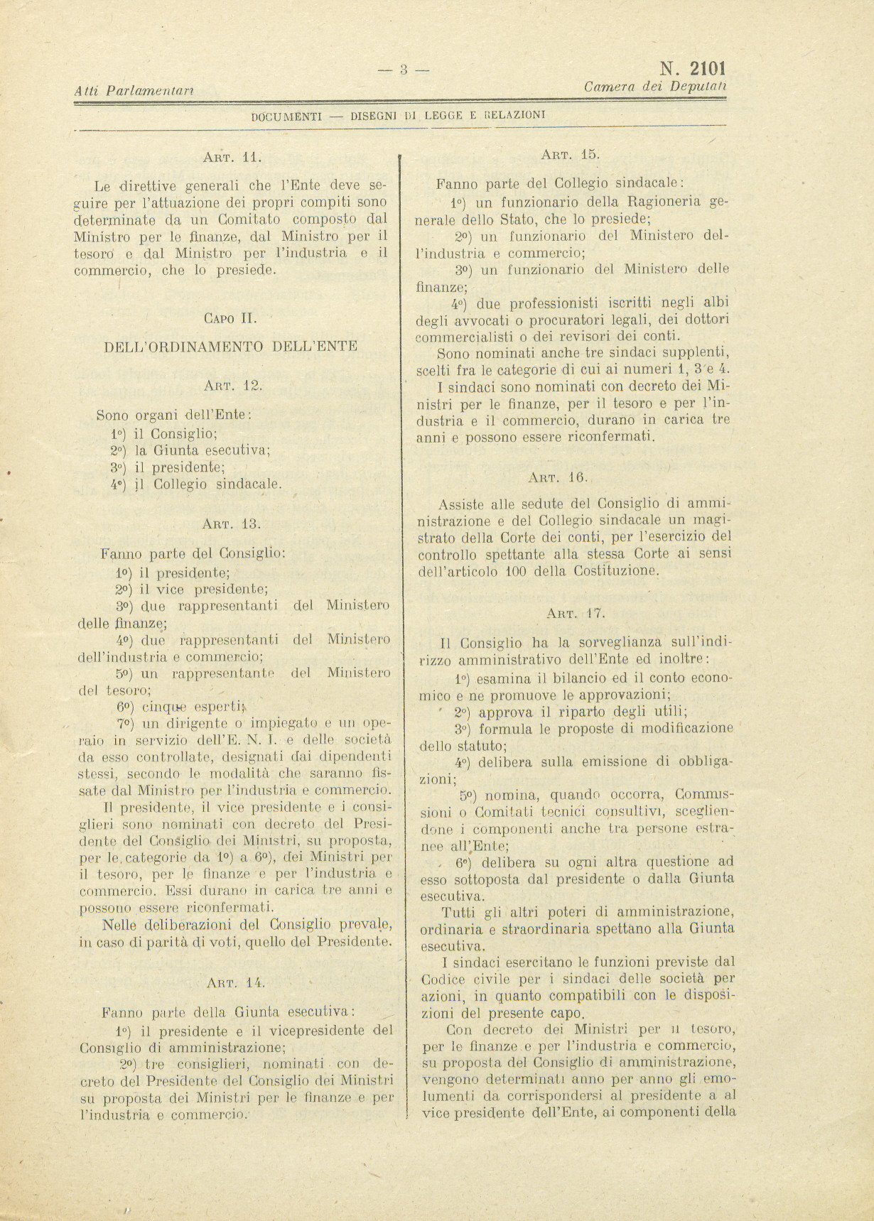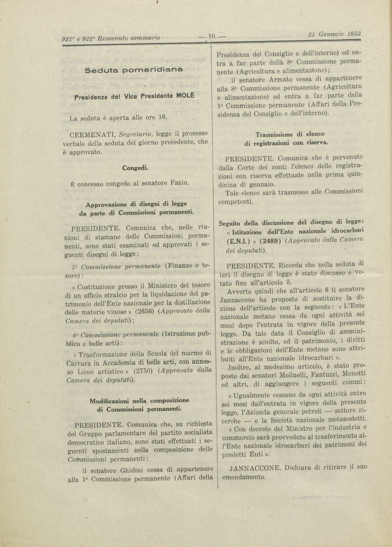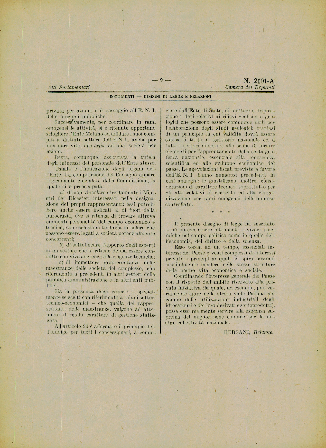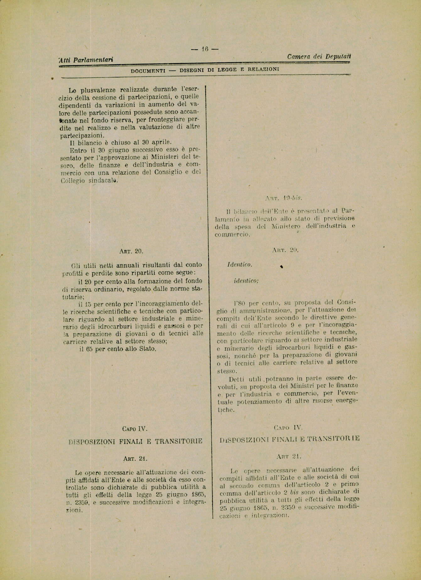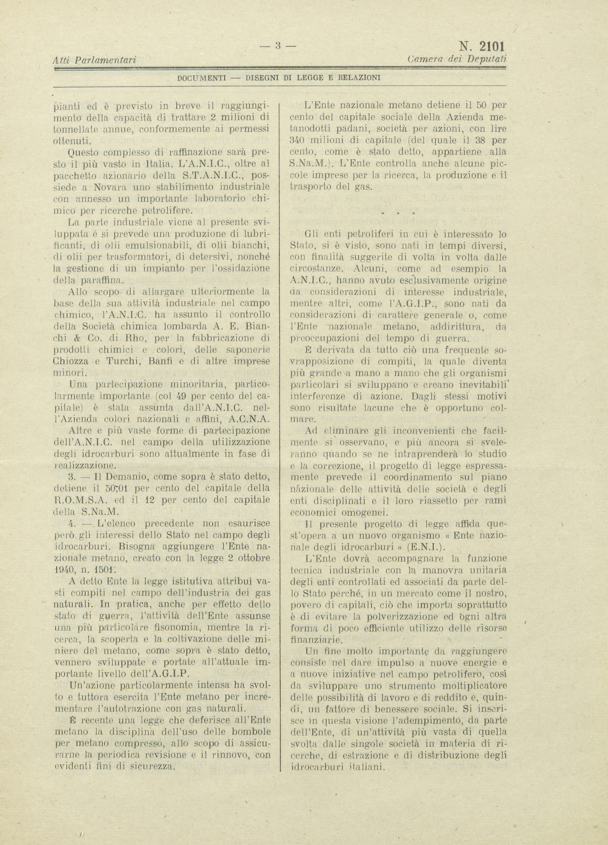 The original archive papers reproduced are taken from a file in the collection of President Enrico Mattei's Secretariat described in the inventory at the following link. It includes the original text of the bill for the establishment of Eni with its modifications and additions, various amendments, Mattei's handwritten notes and drafts of his speeches at the Chamber of Deputies. For the official documents of the legislative process, concerning the discussion and approval of the law, please refer to the historical website of the Chamber of Deputies and to the website of the Heritage of the Archive of the Senate of the Republic.