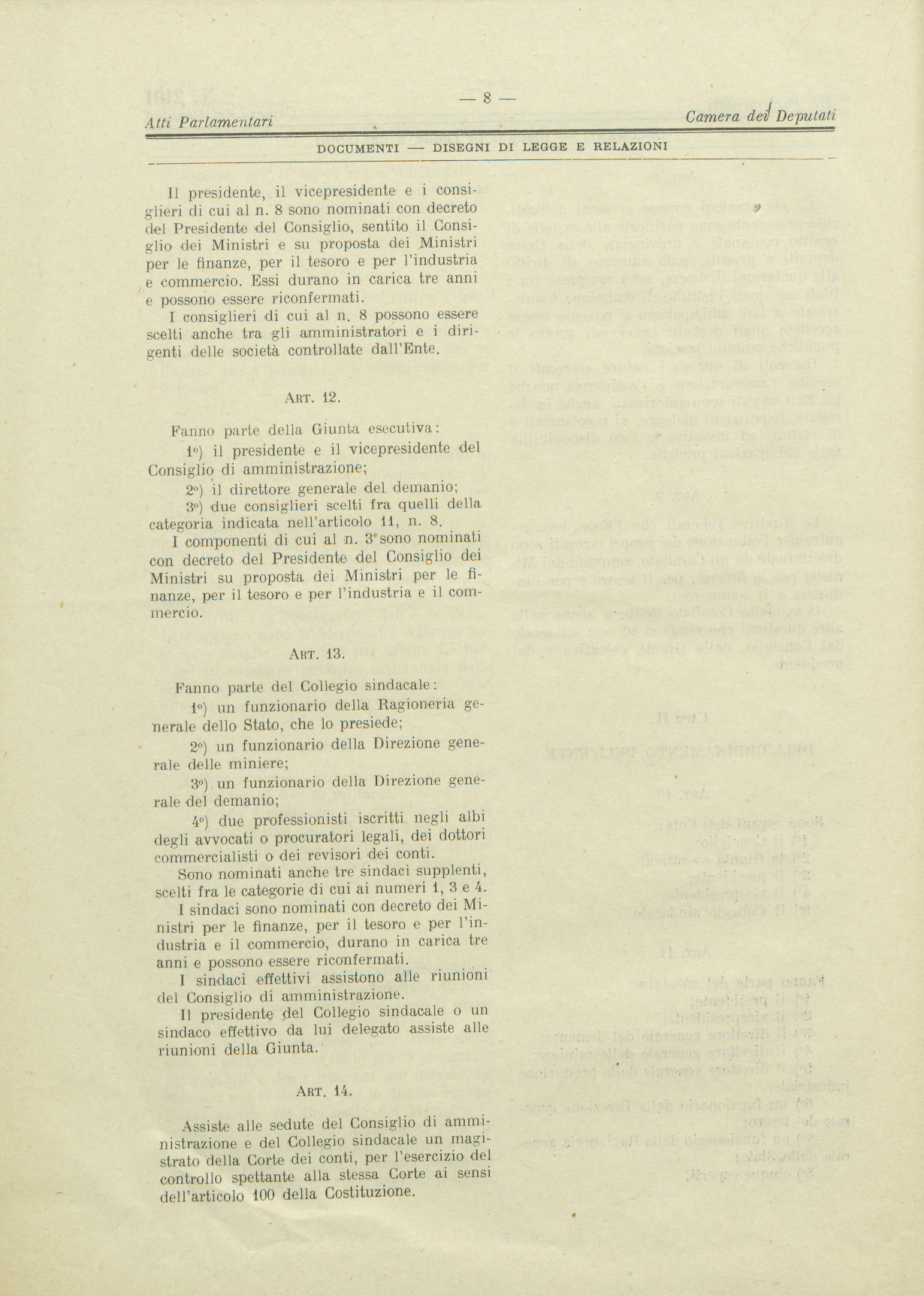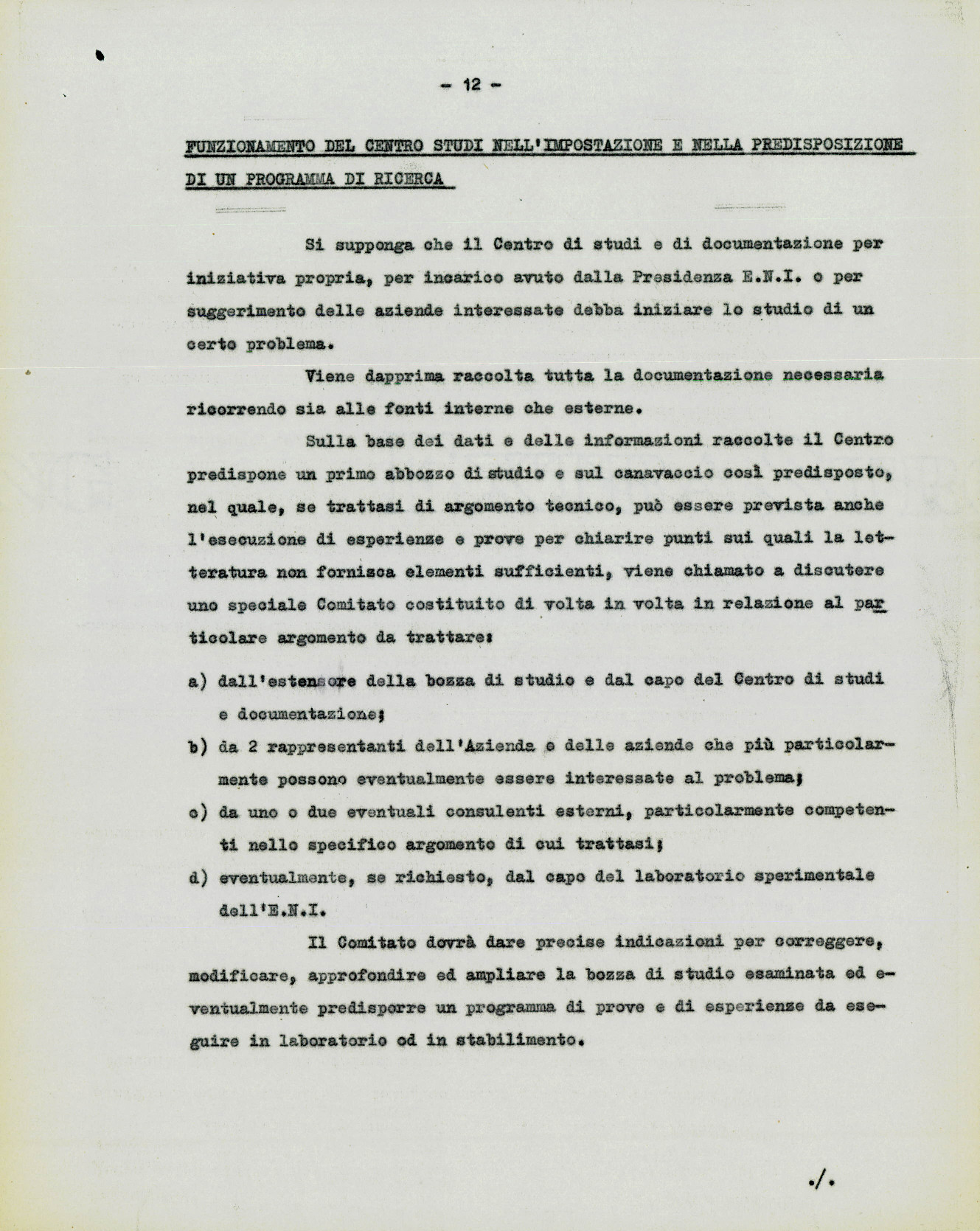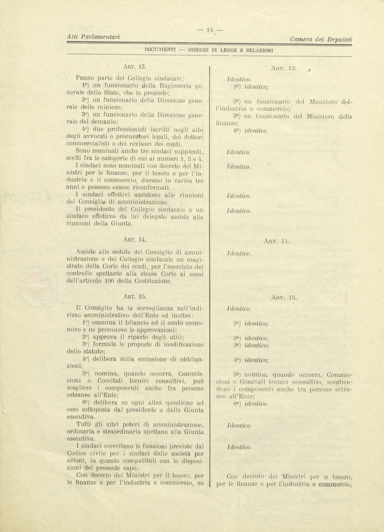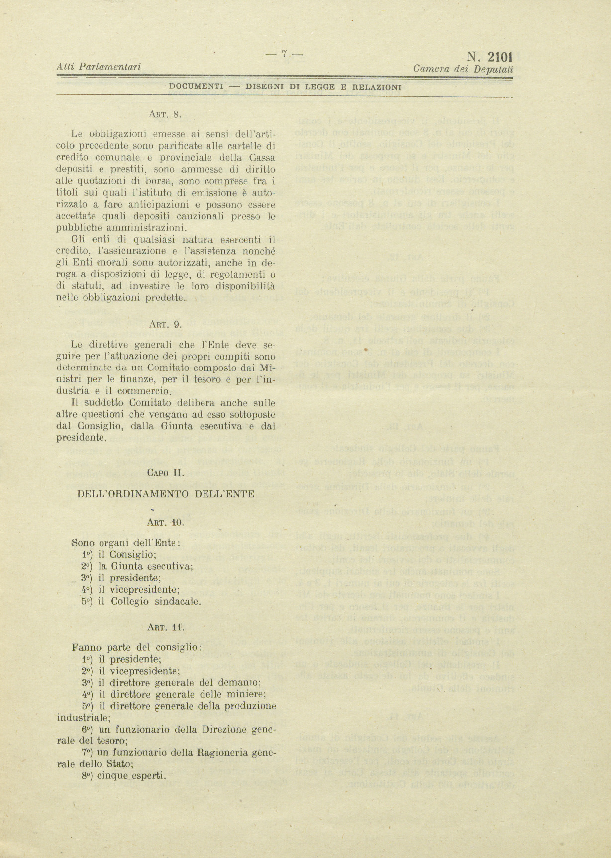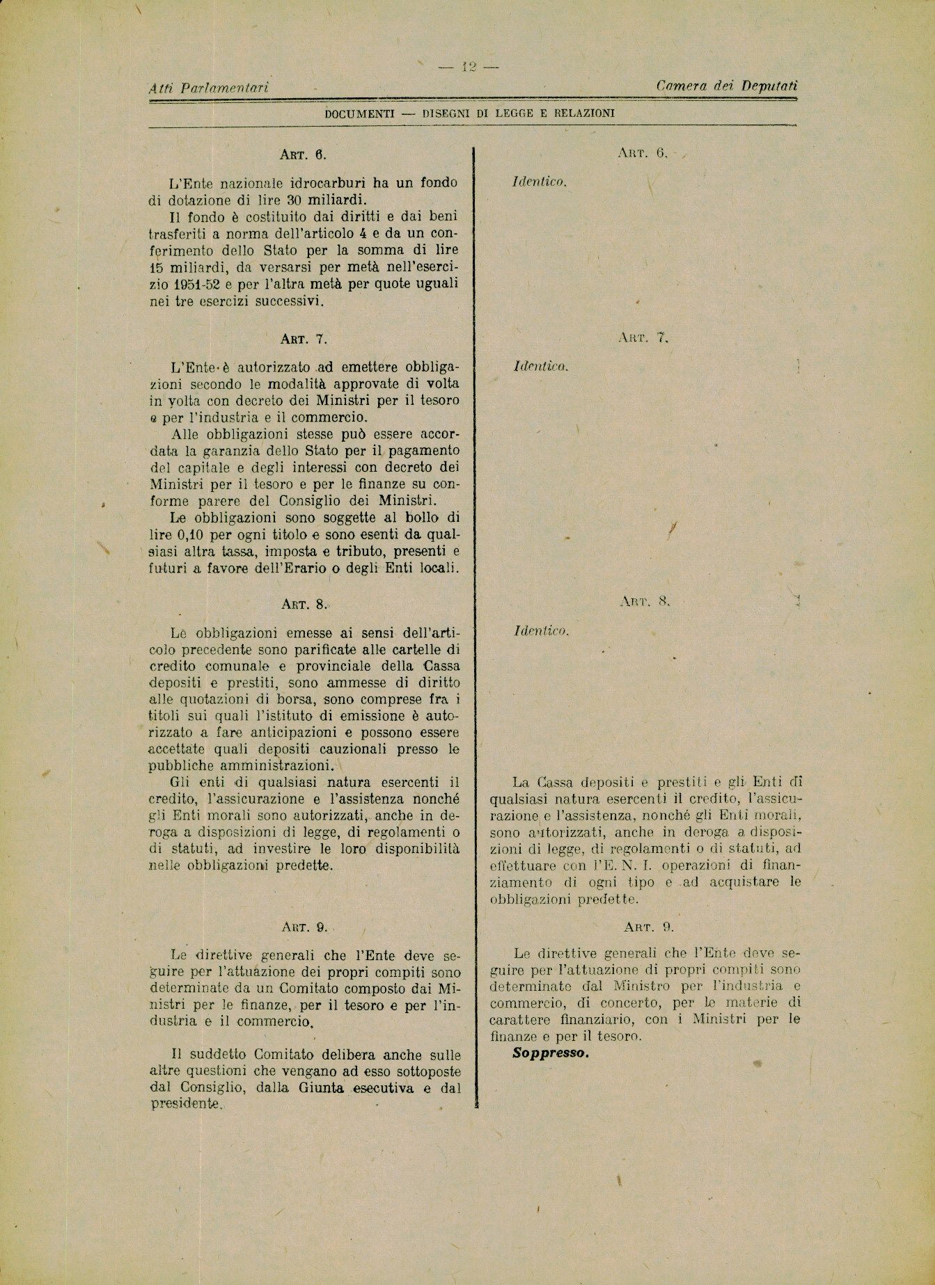 The original archive papers reproduced are taken from a file in the collection of President Enrico Mattei's Secretariat described in the inventory at the following link. It includes the original text of the bill for the establishment of Eni with its modifications and additions, various amendments, Mattei's handwritten notes and drafts of his speeches at the Chamber of Deputies. For the official documents of the legislative process, concerning the discussion and approval of the law, please refer to the historical website of the Chamber of Deputies and to the website of the Heritage of the Archive of the Senate of the Republic.