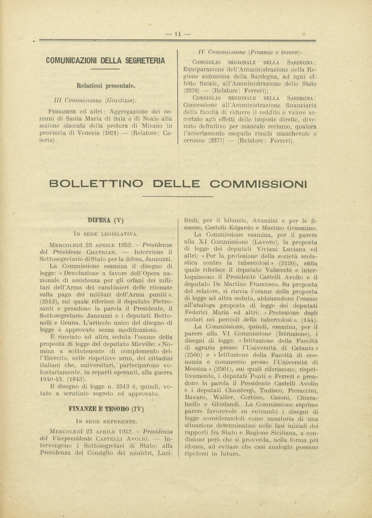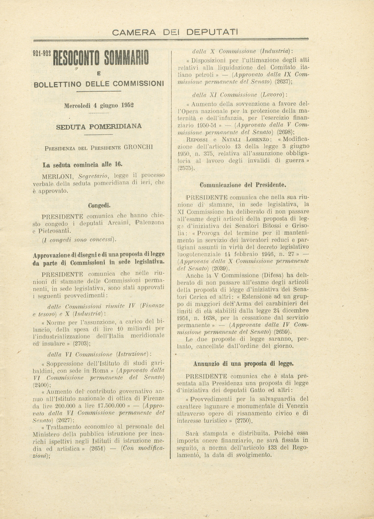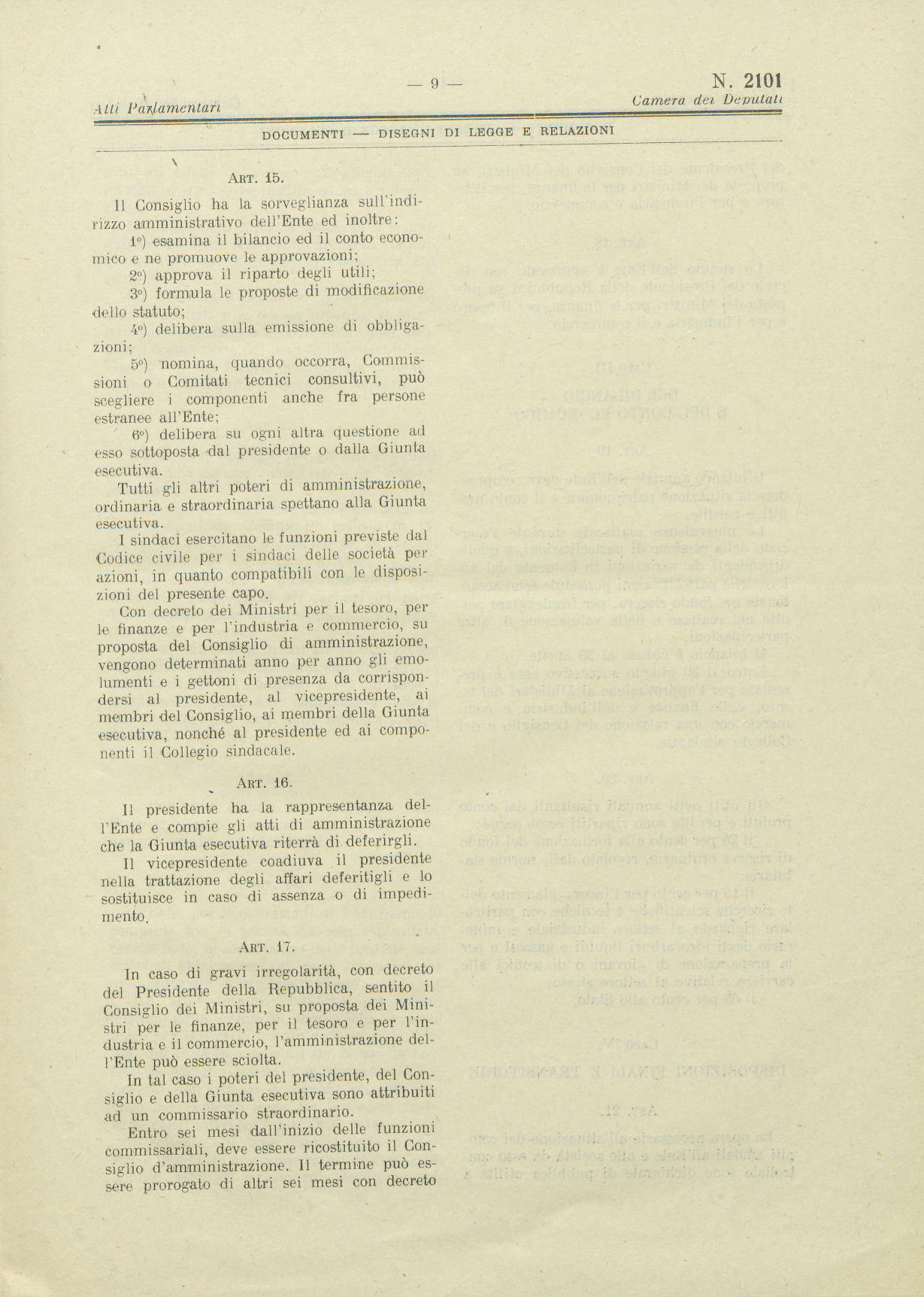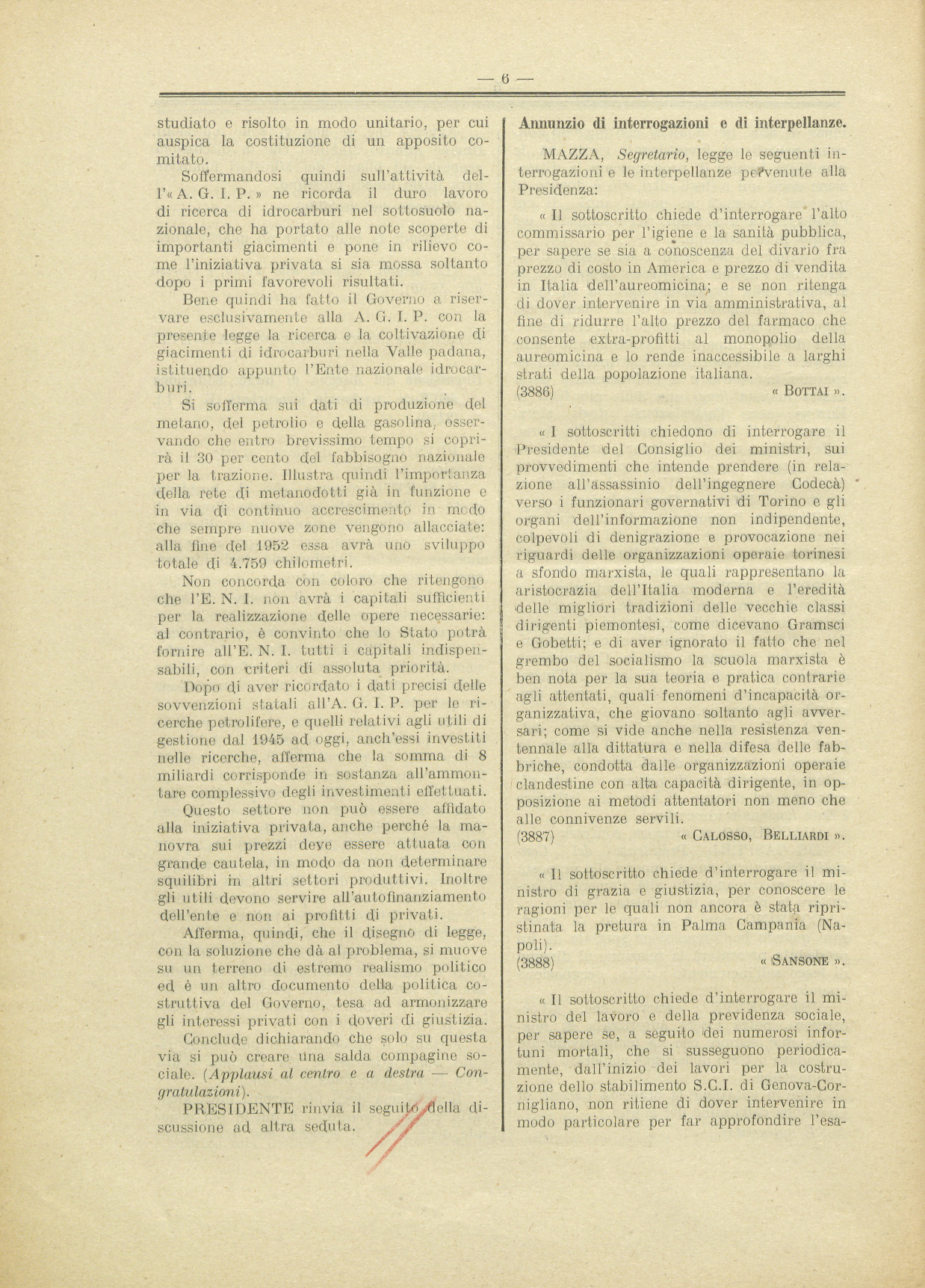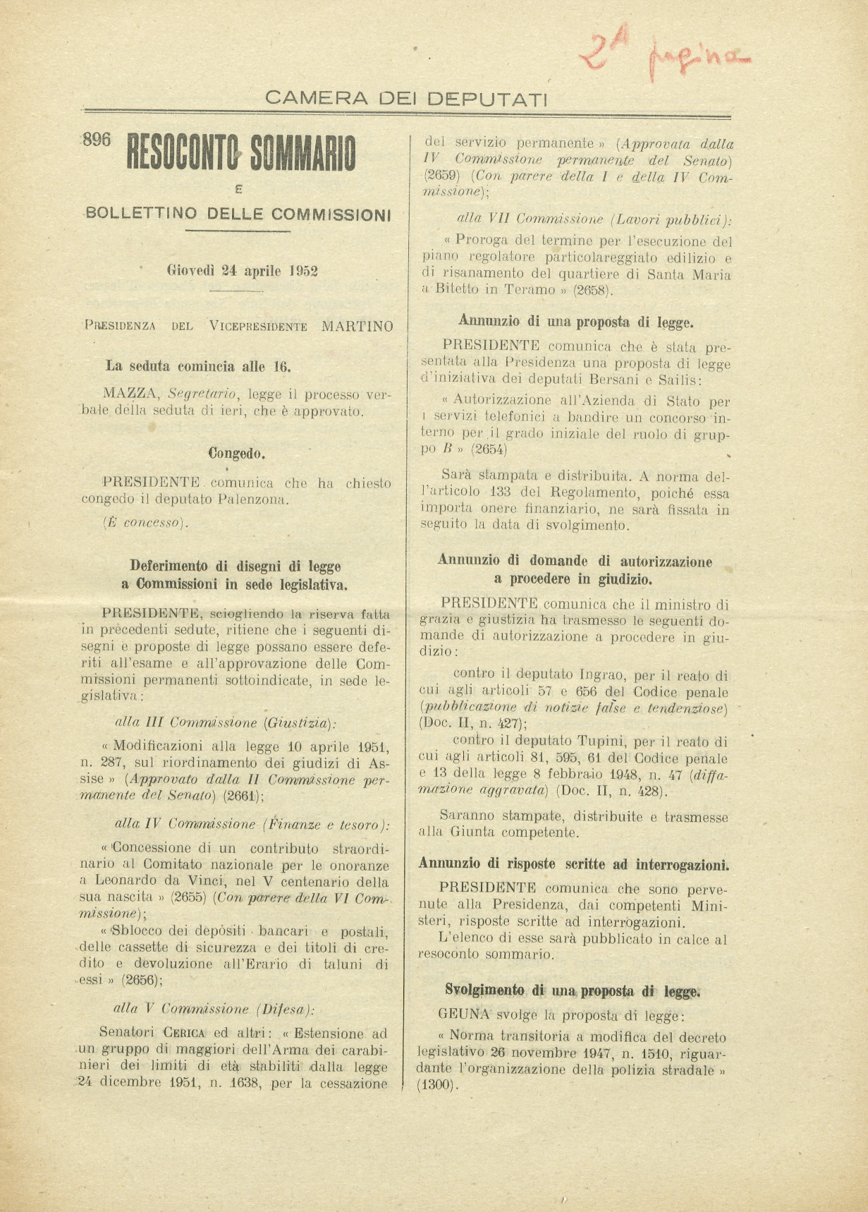 The original archive papers reproduced are taken from a file in the collection of President Enrico Mattei's Secretariat described in the inventory at the following link. It includes the original text of the bill for the establishment of Eni with its modifications and additions, various amendments, Mattei's handwritten notes and drafts of his speeches at the Chamber of Deputies. For the official documents of the legislative process, concerning the discussion and approval of the law, please refer to the historical website of the Chamber of Deputies and to the website of the Heritage of the Archive of the Senate of the Republic.