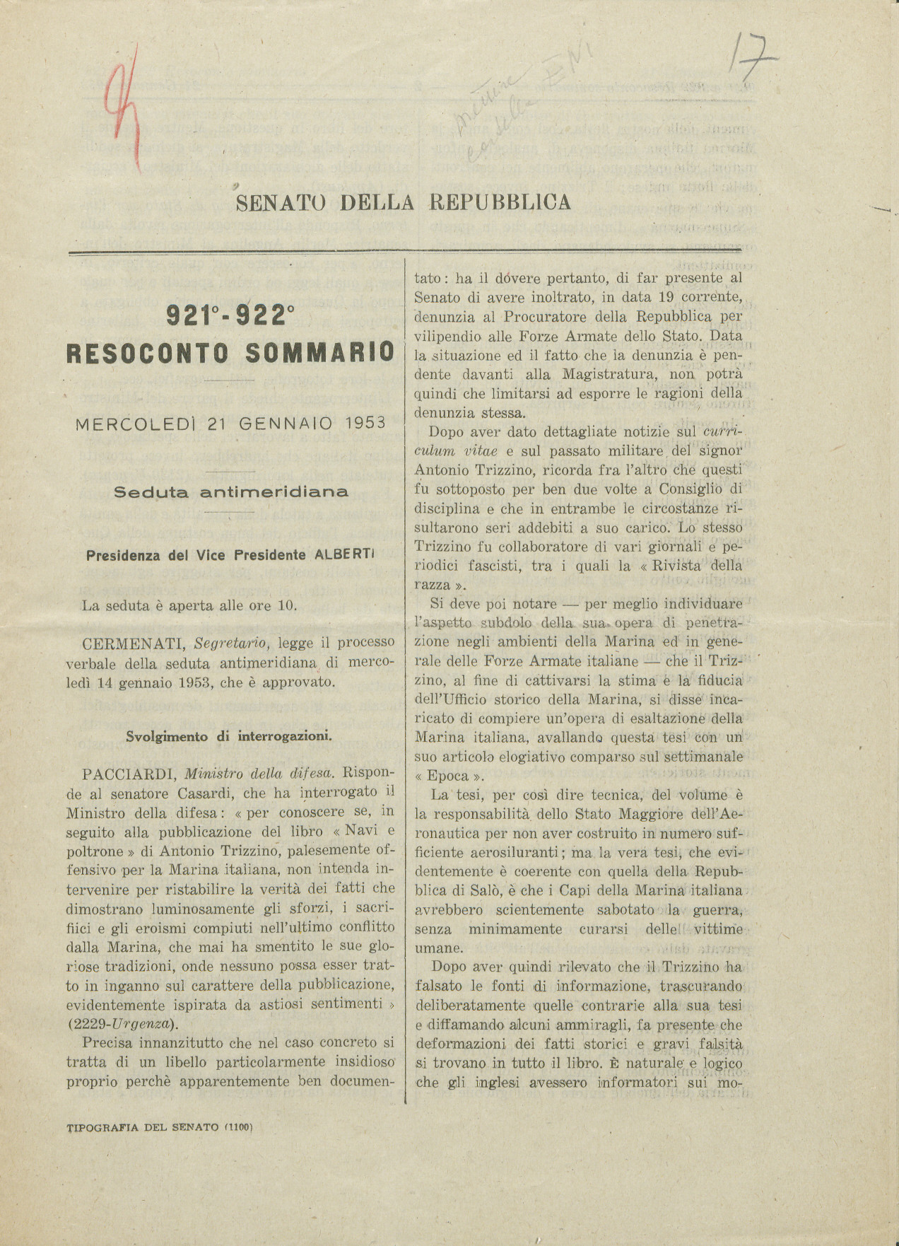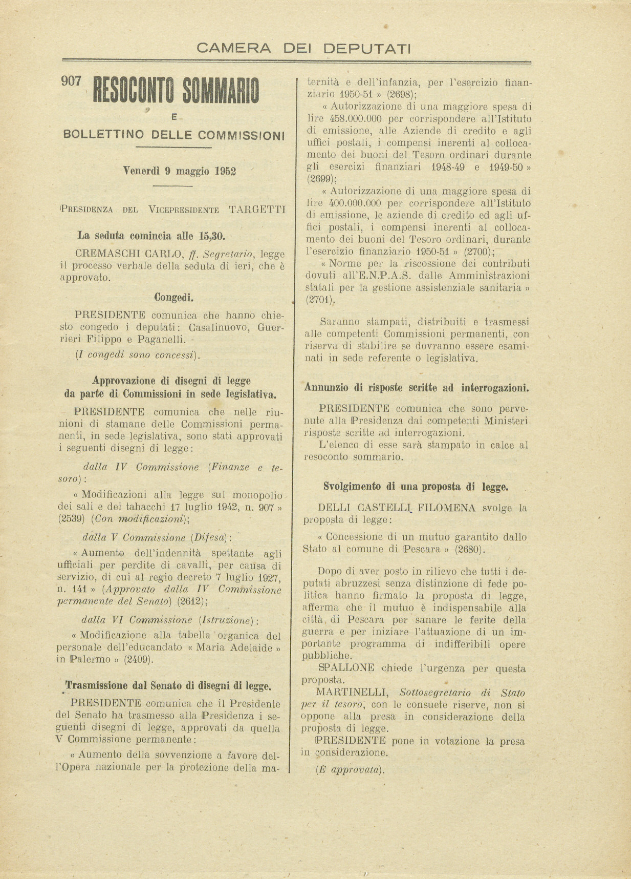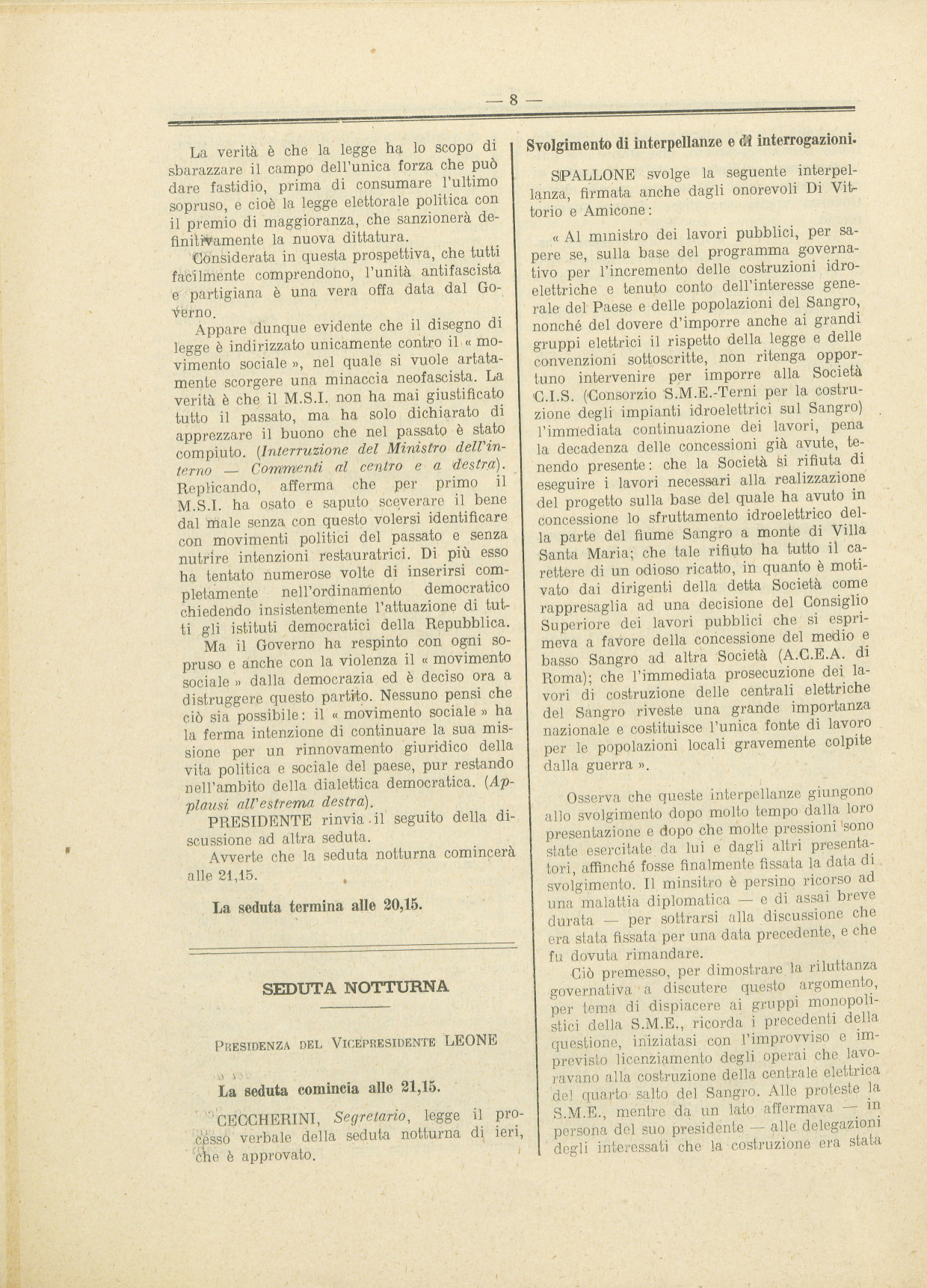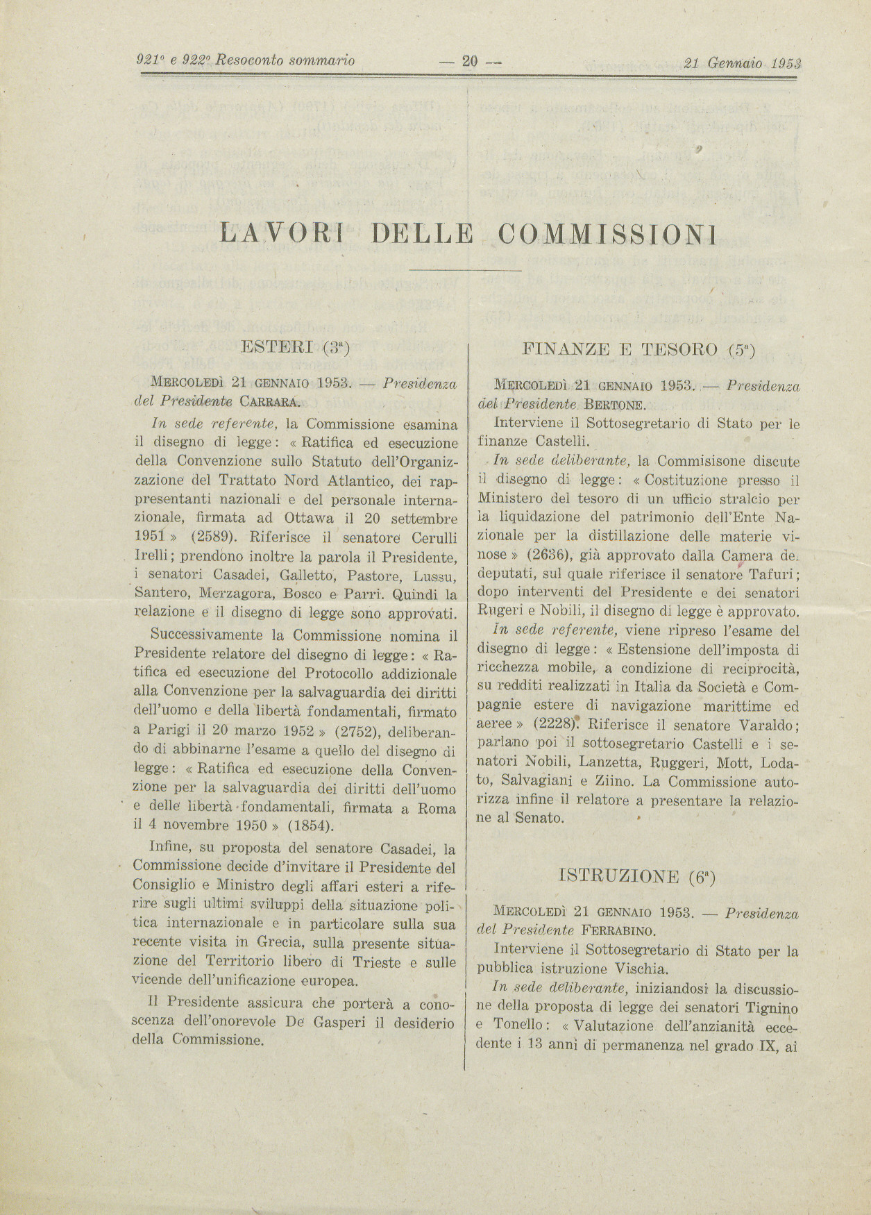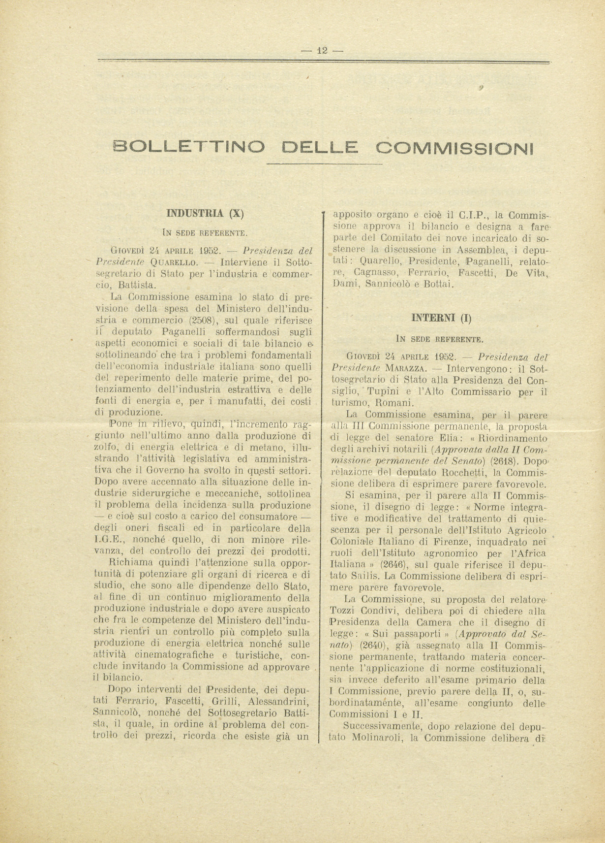 The original archive papers reproduced are taken from a file in the collection of President Enrico Mattei's Secretariat described in the inventory at the following link. It includes the original text of the bill for the establishment of Eni with its modifications and additions, various amendments, Mattei's handwritten notes and drafts of his speeches at the Chamber of Deputies. For the official documents of the legislative process, concerning the discussion and approval of the law, please refer to the historical website of the Chamber of Deputies and to the website of the Heritage of the Archive of the Senate of the Republic.