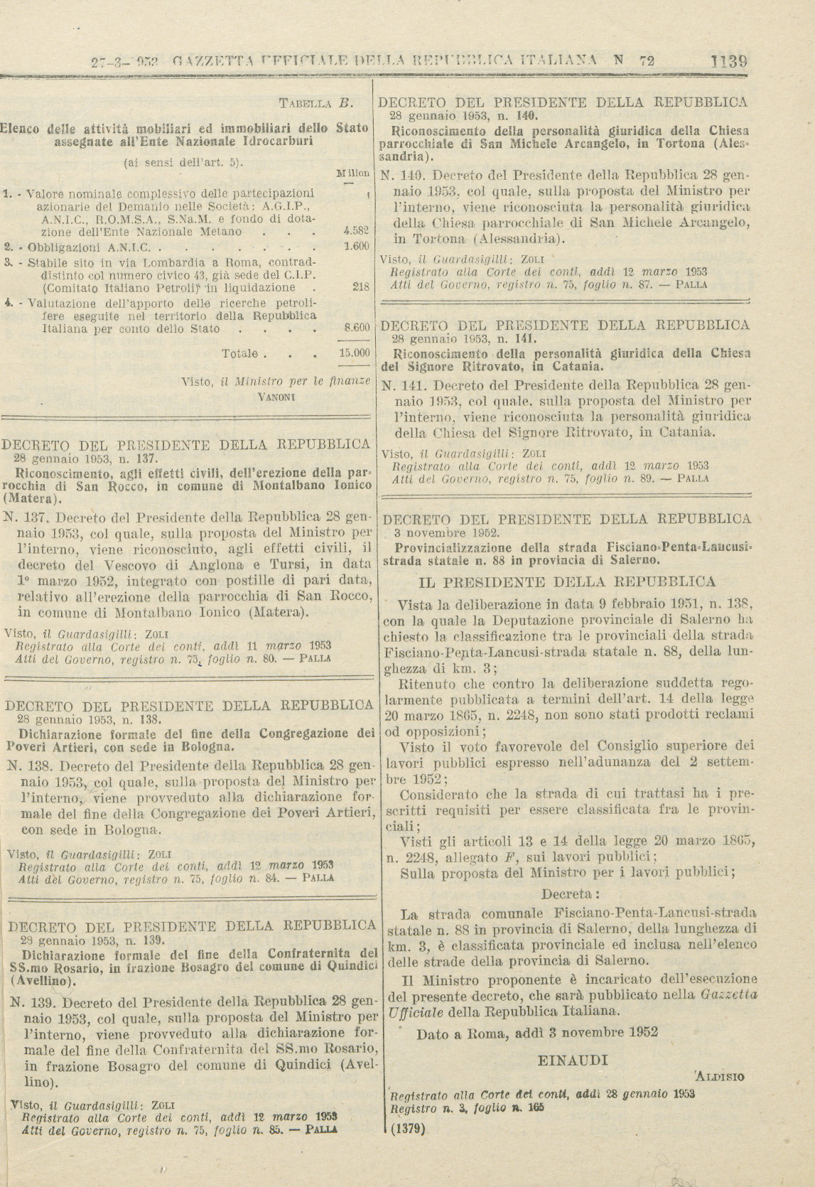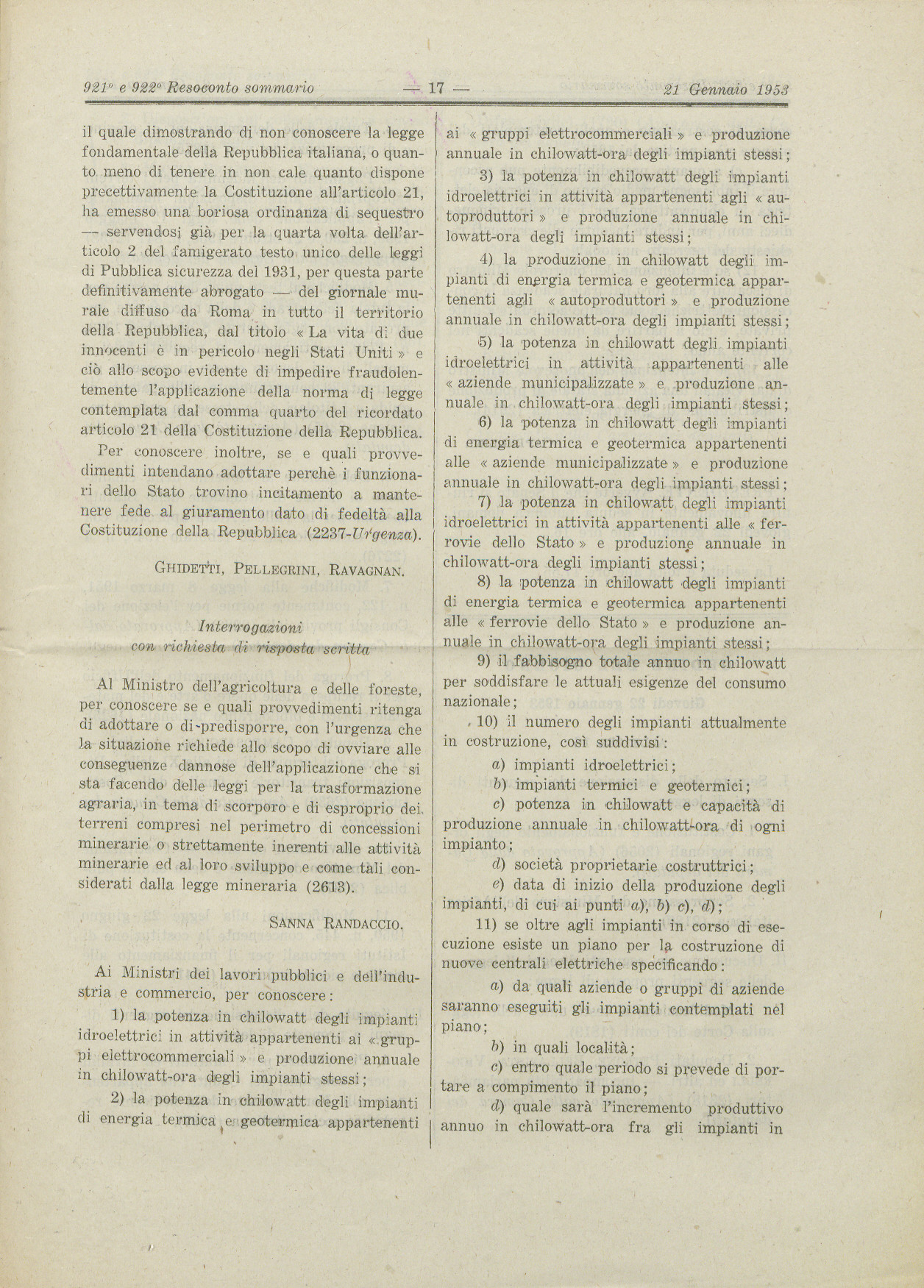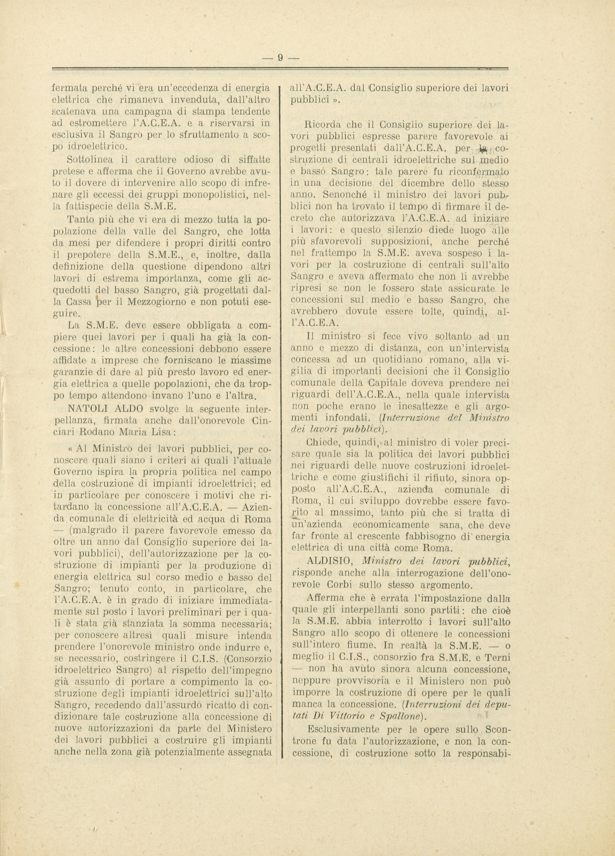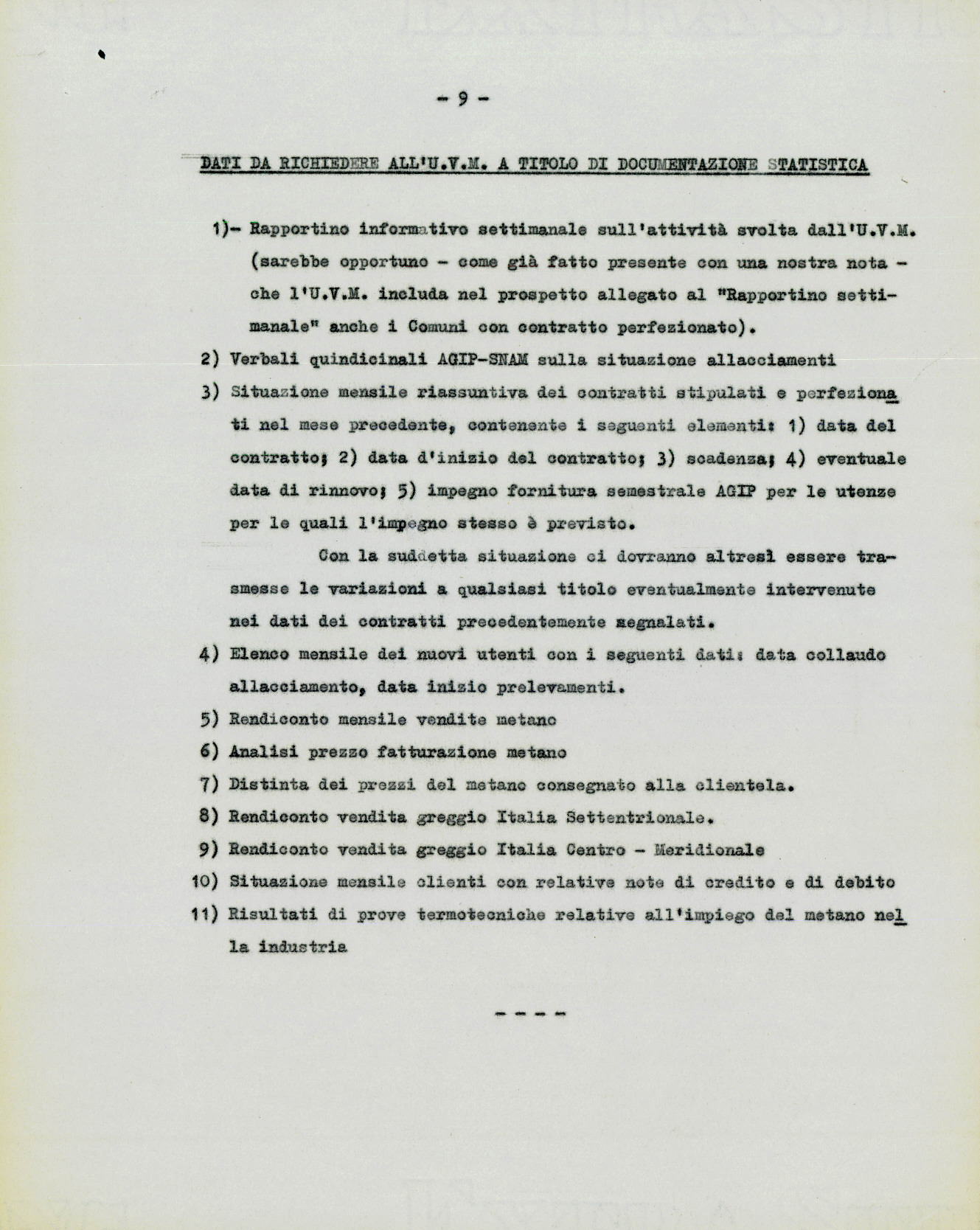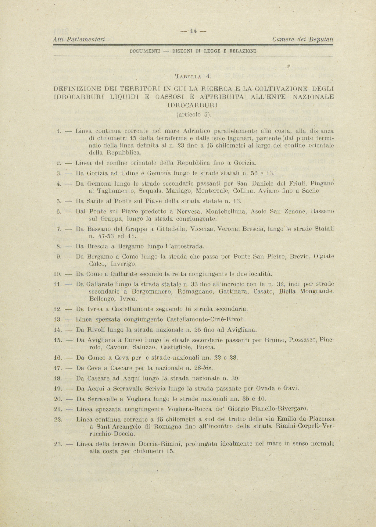 The debate on the management of Italy's subsoil resources was forcefully launched with the nationalization of the Agip reservoirs in the Po Valley since 1949. The interest in hydrocarbons was more than controversial, embedded in a framework of great involvement and strong political and social contrasts. From sensational launches to the release of parliamentary proceedings on a new law regulating energy matters, the press follows the civil debates that are divergent on major issues: public management or free enterprise, domestic or foreign funding, nature and extent of concessions. The proclamation of Law No. 136 of February 10th, 1953, set off the public monopoly in the Po Valley, leaving the remaining national territory under concession arrangements.