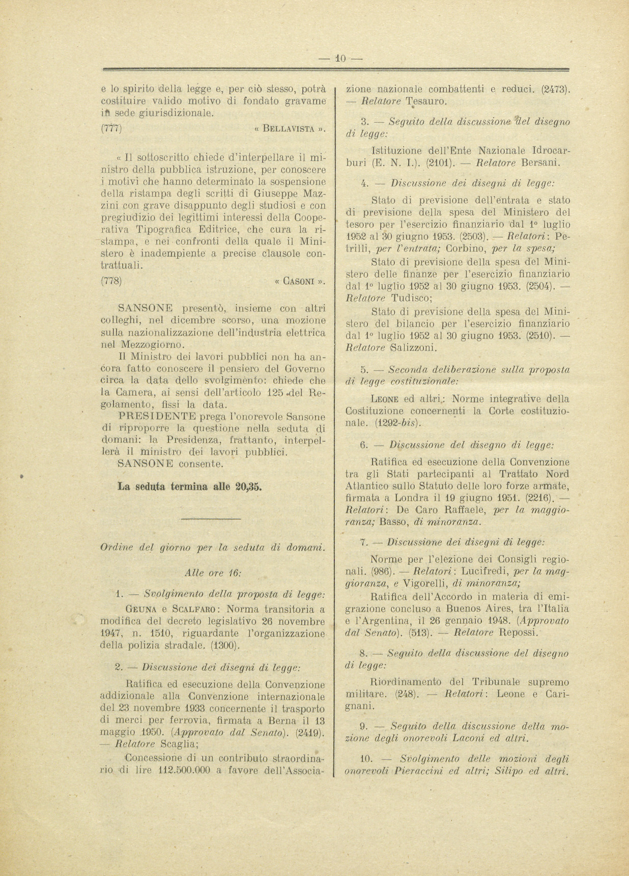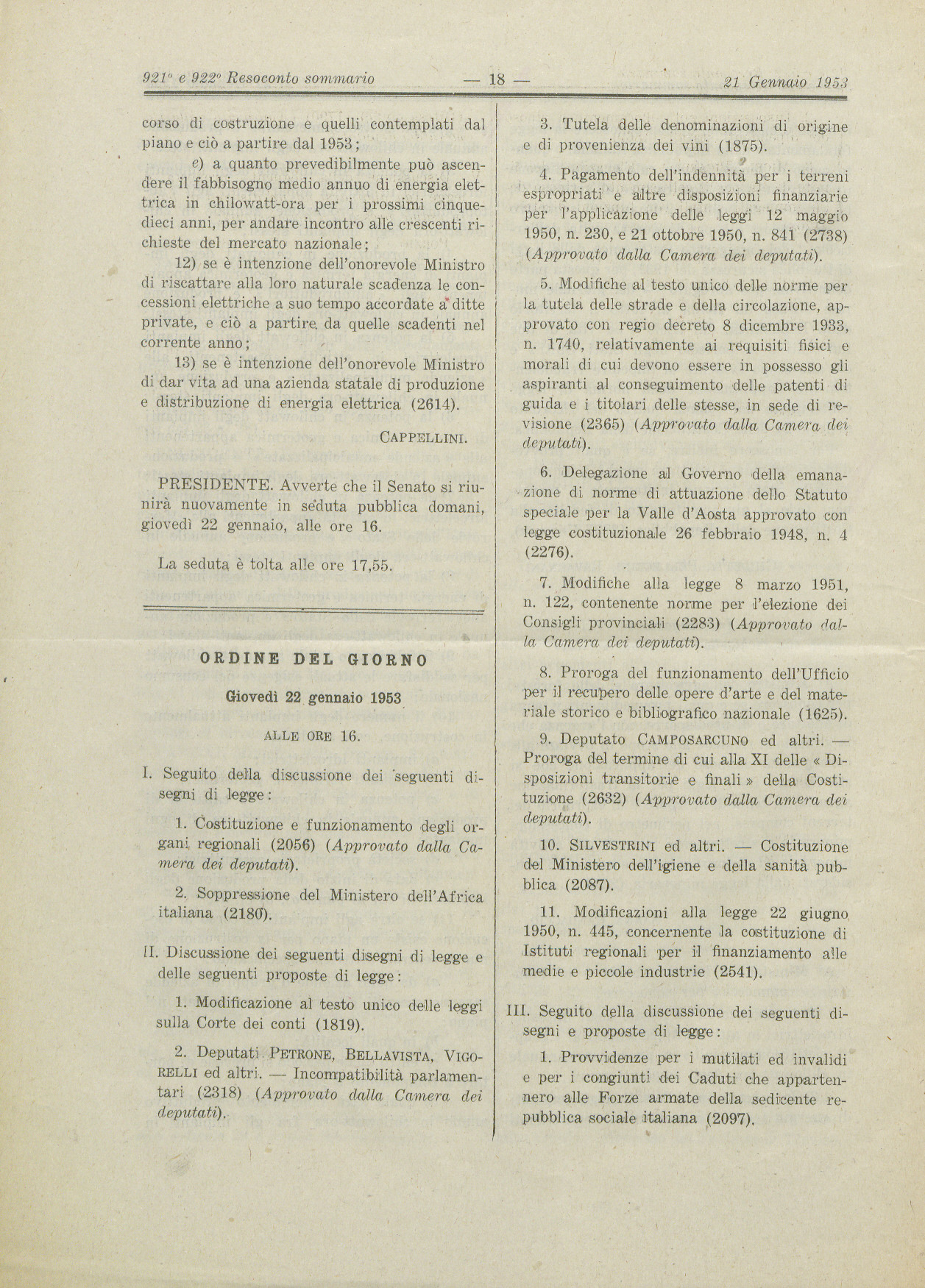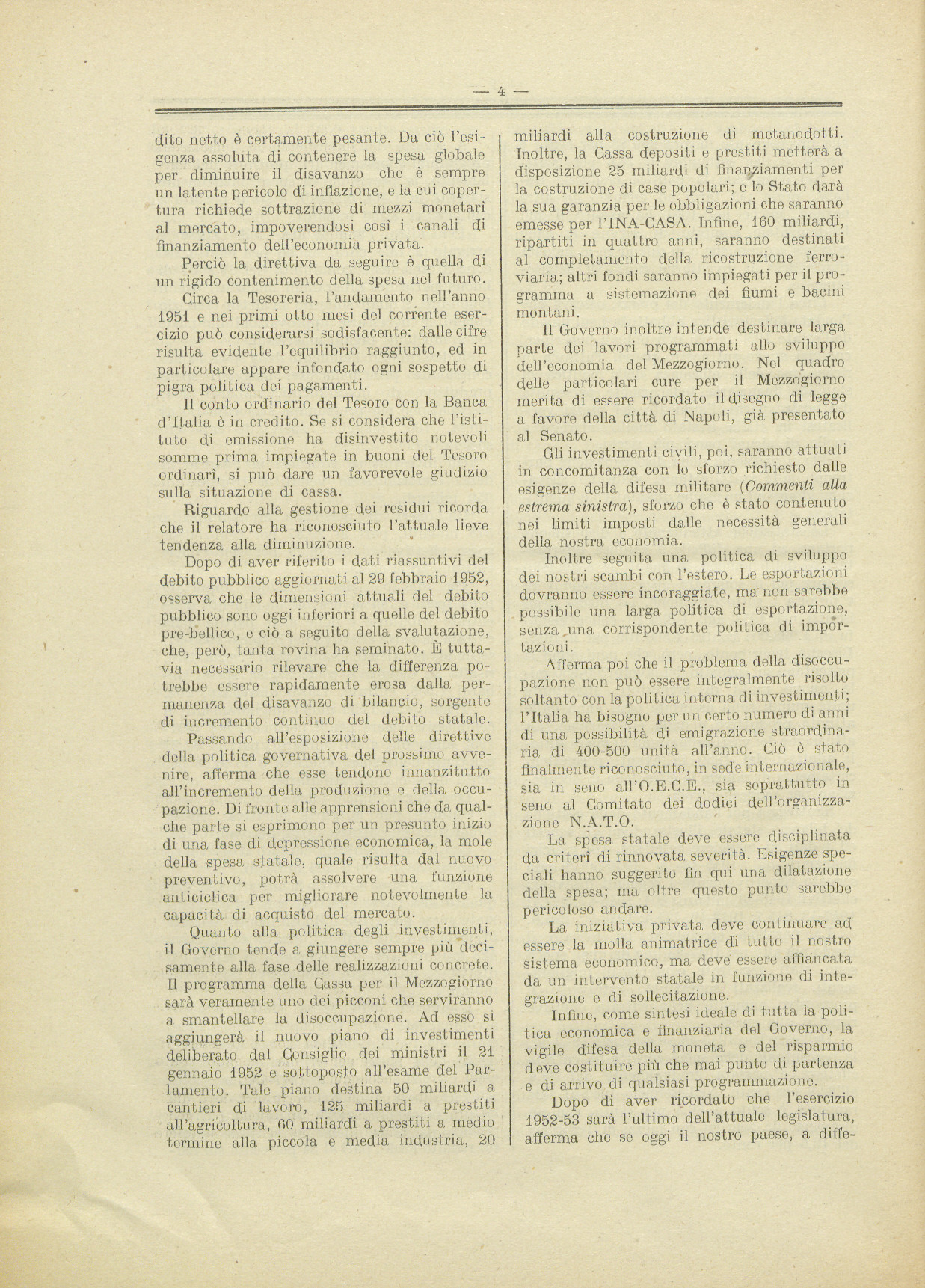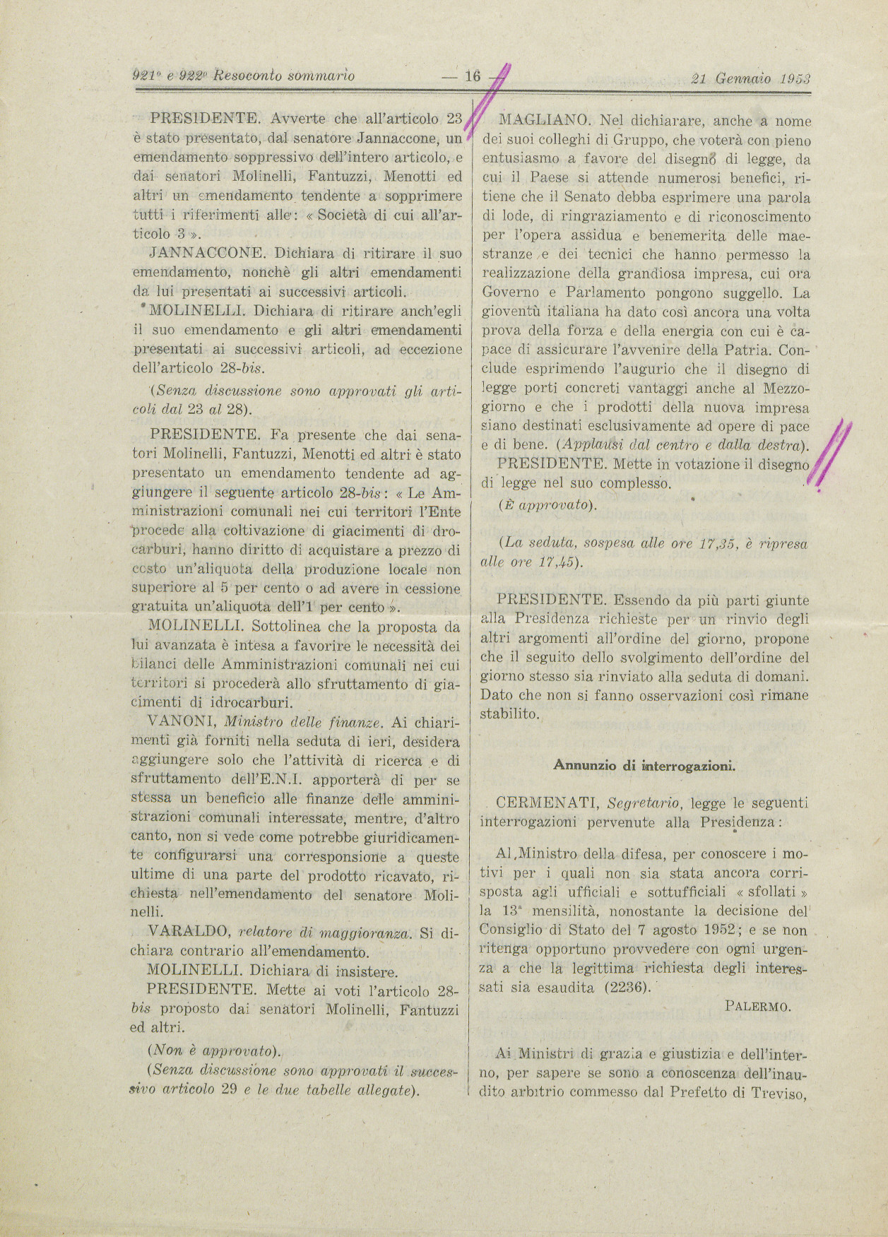 4. 1952-1953 The approval in principle of a National Hydrocarbons Authority under monopoly in the Chamber of Deputies opened a heated year of debate on the discussion in the Senate, in the broader context of political clashes over the government's vote of confidence and the approval of the new election law, a moment of great political involvement of the nation. On January 22nd, 1953 the law was also approved by the Senate thus restricting the monopoly on the Po Valley to Eni.
