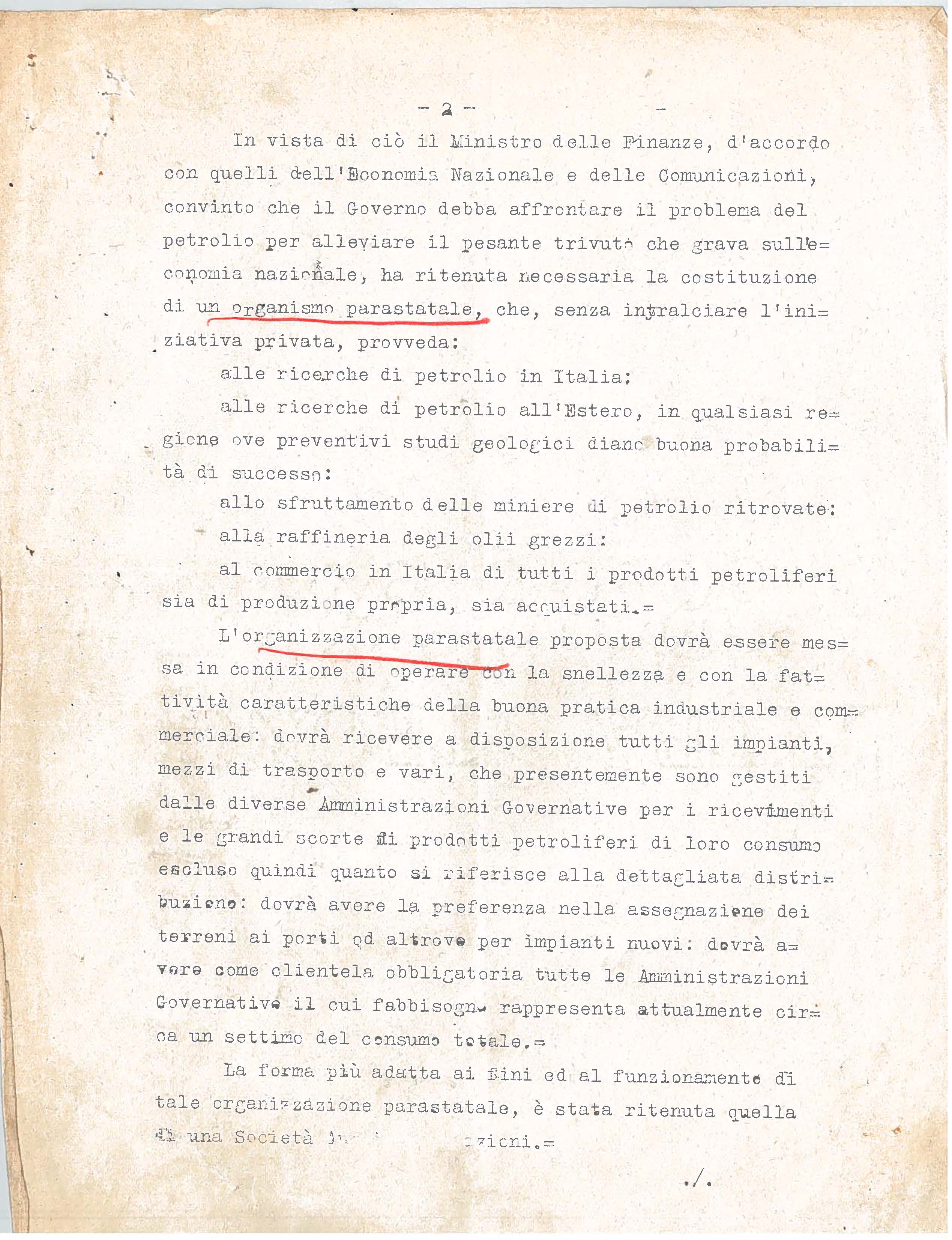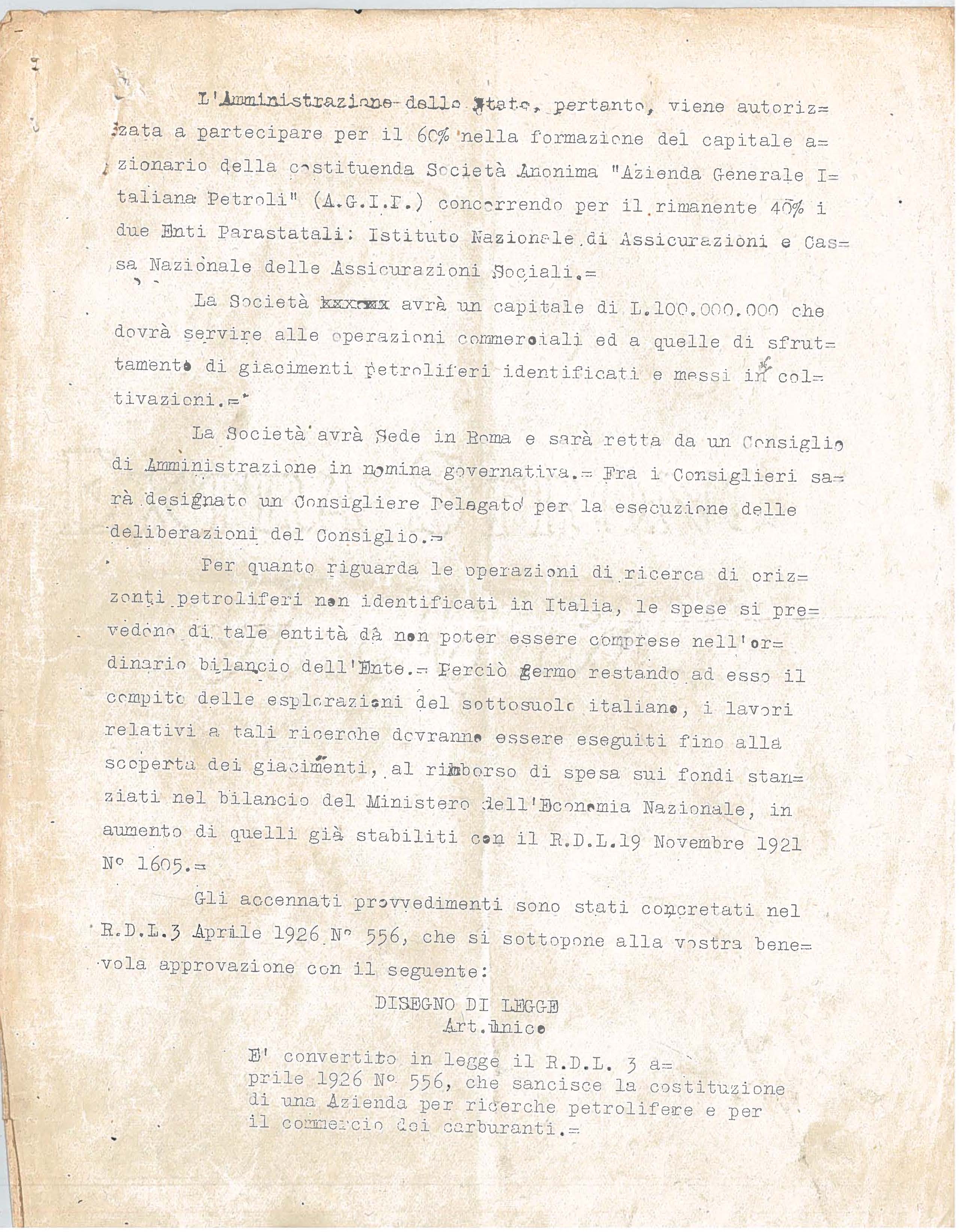 The new company, which had the form of a "holding company" with a management and coordination functions, was entrusted with all the activities relating to production, processing, and marketing of hydrocarbons and mineral oils, with the power to make regulatory interventions and undertake "all kinds of initiatives in the global oil market". For a country determined to compete with major industrial powers, developing a strategy to resolve the national "oil problem" was a necessity: hydrocarbons are the driving force of modernity and Italy can't stand by and watch.