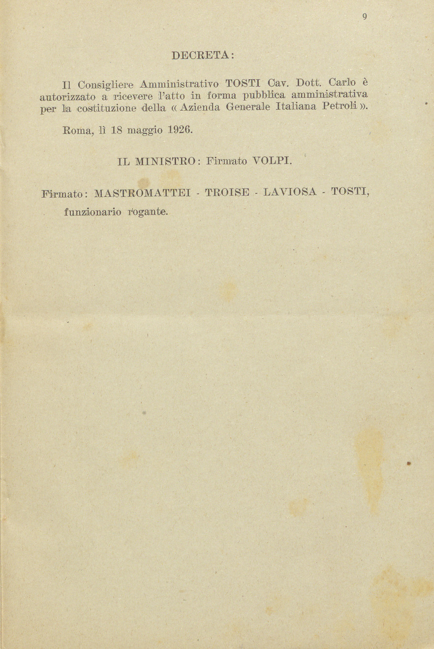 At the end of the war in 1945 the new government appointed a Special Commissioner for the divestment of Agip