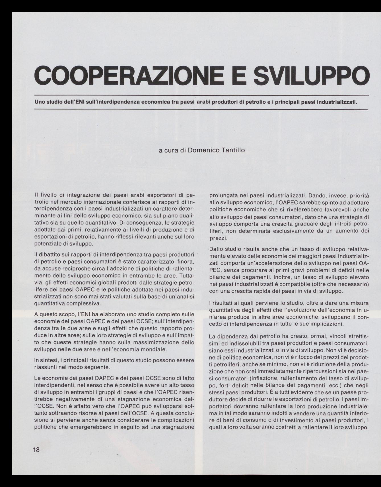 "Cooperazione e sviluppo" - Sott.: "Uno studio dell'Eni sull'interdipendenza economica tra paesi arabi produttori di petrolio e i principali paesi industrializzati."