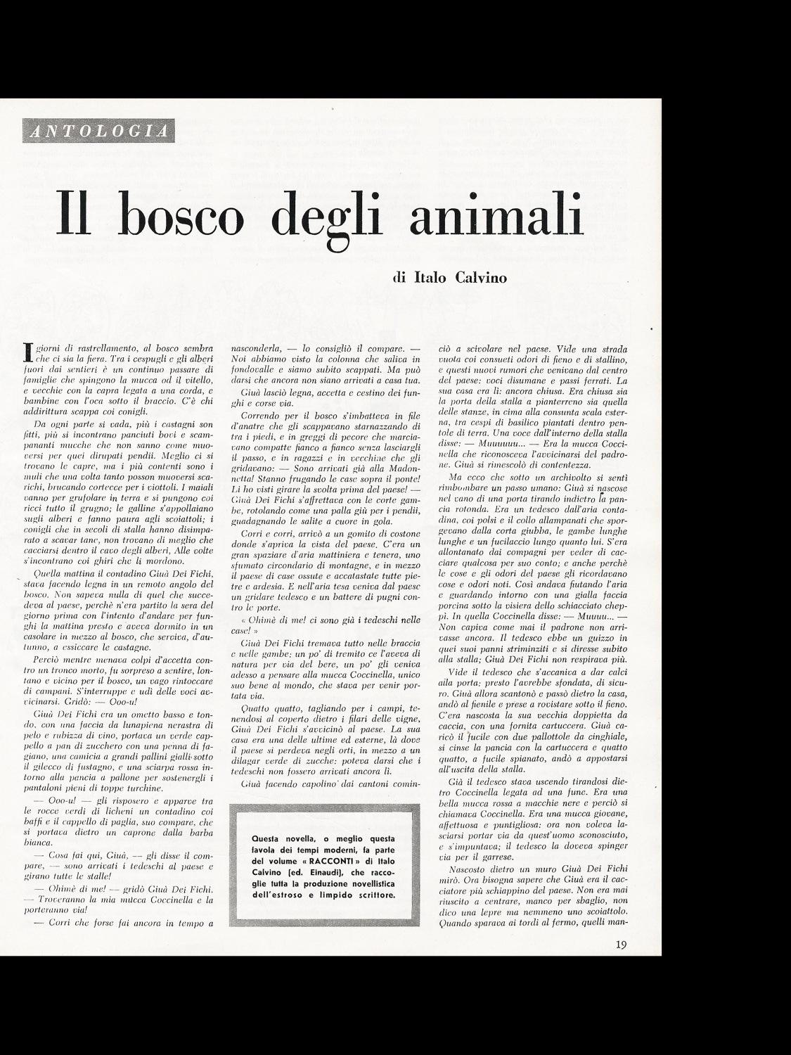 Antologia, Il bosco degli animali (novella tratta dal volume Racconti, di Italo Calvino, ed. Einaudi)