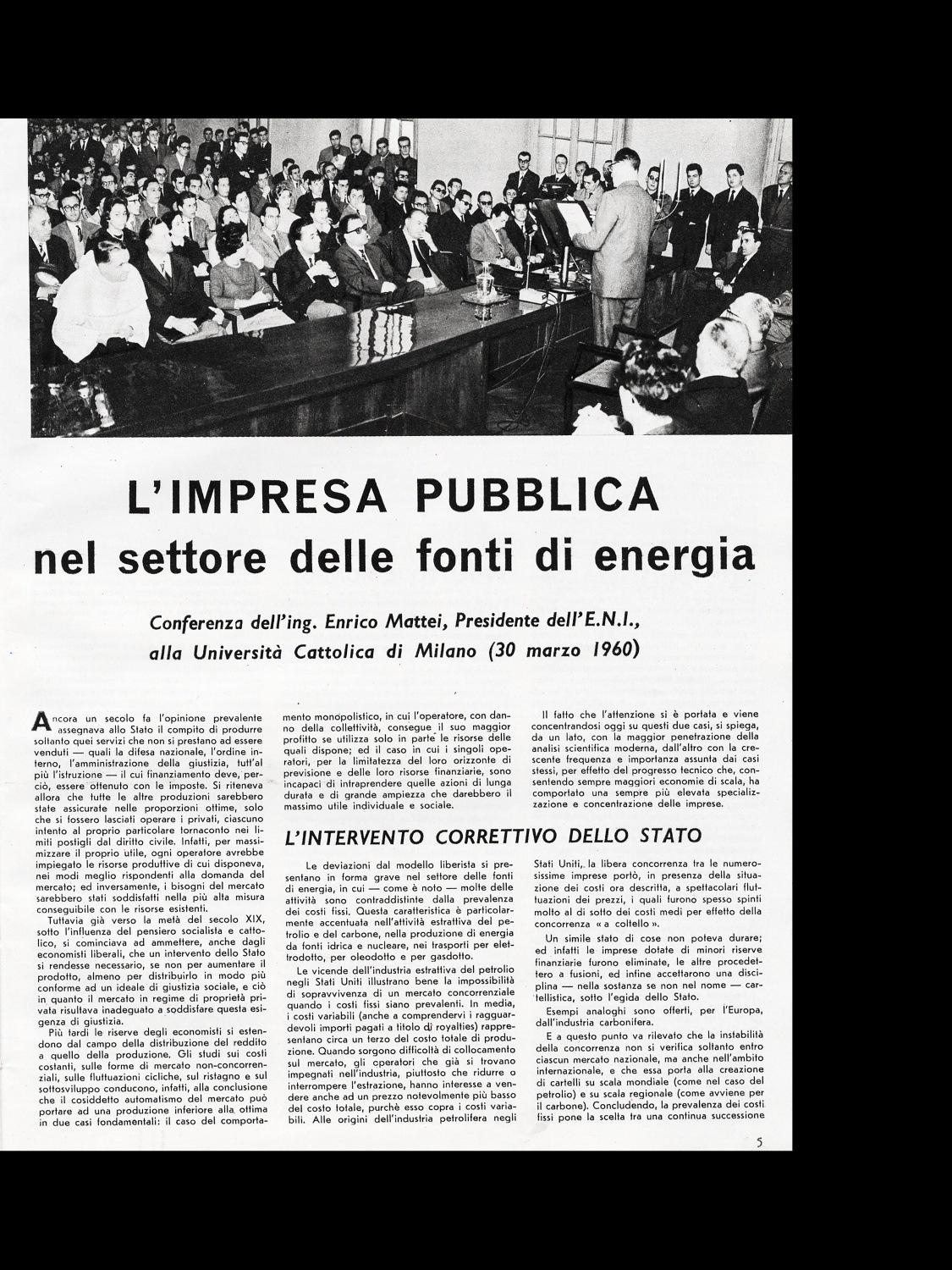 L'impresa pubblica nel settore delle fonti di energia (conferenza dell'ing. Enrico Mattei, presidente dell'Eni, alla Università cattolica di Milano, 30 marzo 1960)ricorrenza dall'evento del terremoto in Marocco)