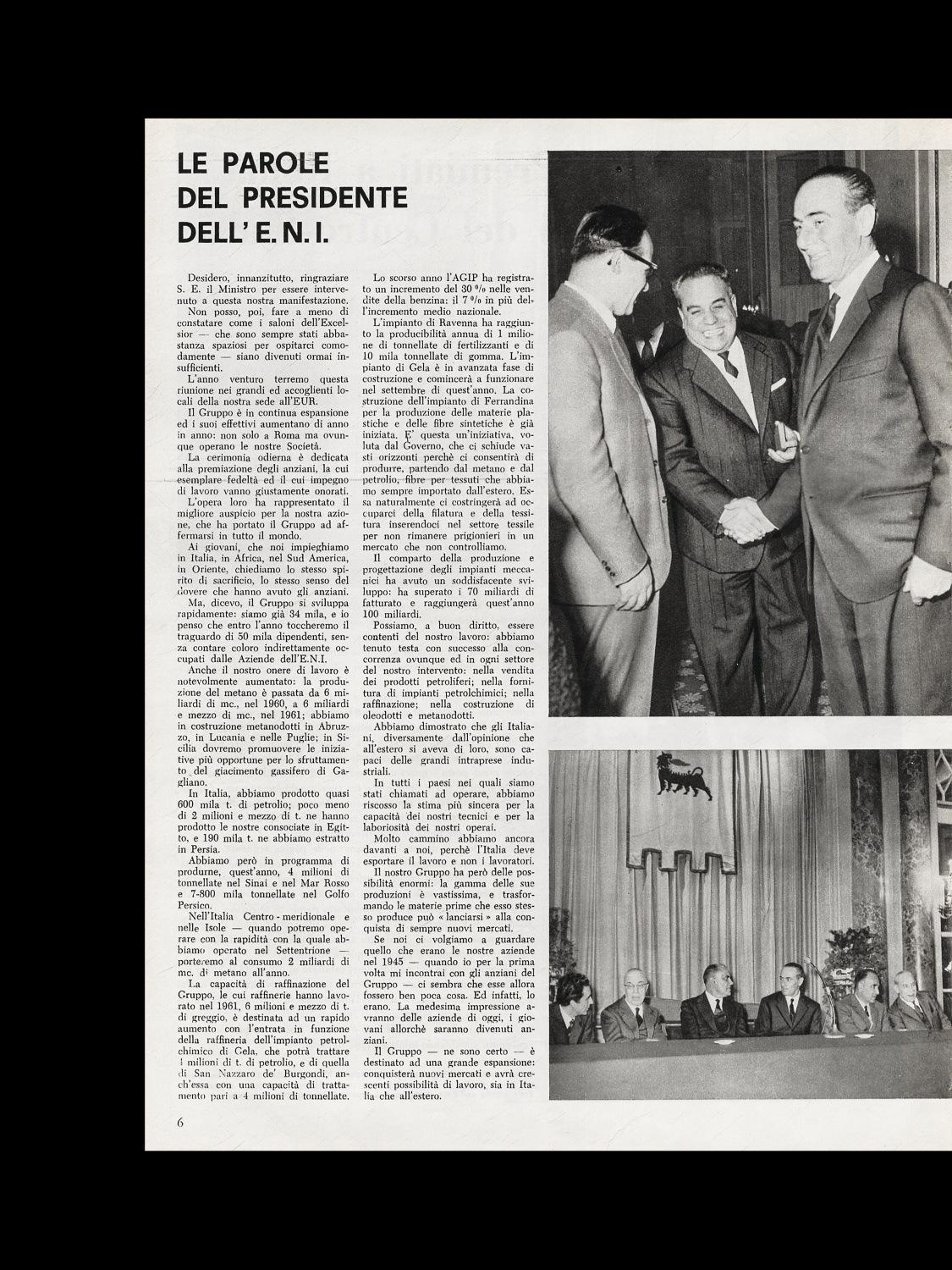 Le parole del Presidente dell'Eni Mattei e del Ministro delle Partecipazioni Statali, On. Bo