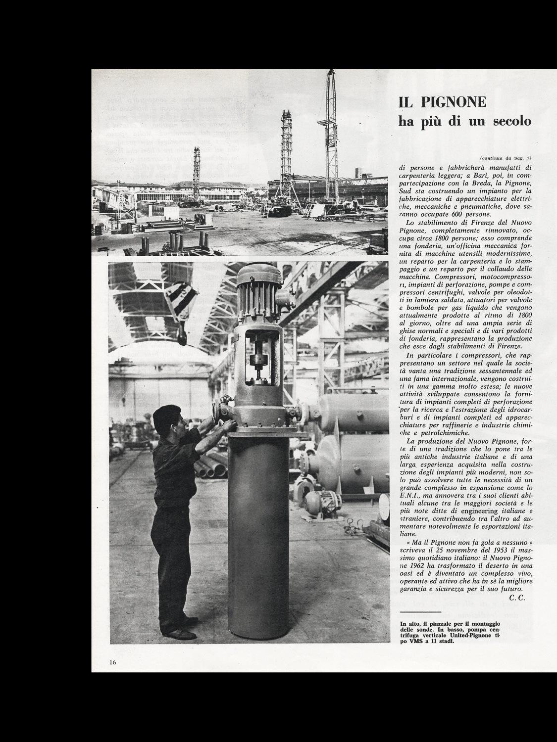 Lettera da Firenze, Il Pignone ha più di un secolo (Complesso industriale del Nuovo Pignone nei tre stabilimenti di Firenze, massa e Talamona) [continuazione dell'articolo di pagina 7]