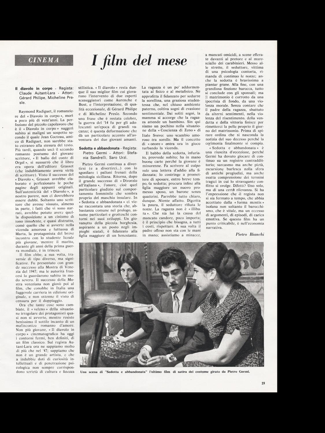 Cinema, I film del mese (Il diavolo in corpo, sedotta e abbandonata)